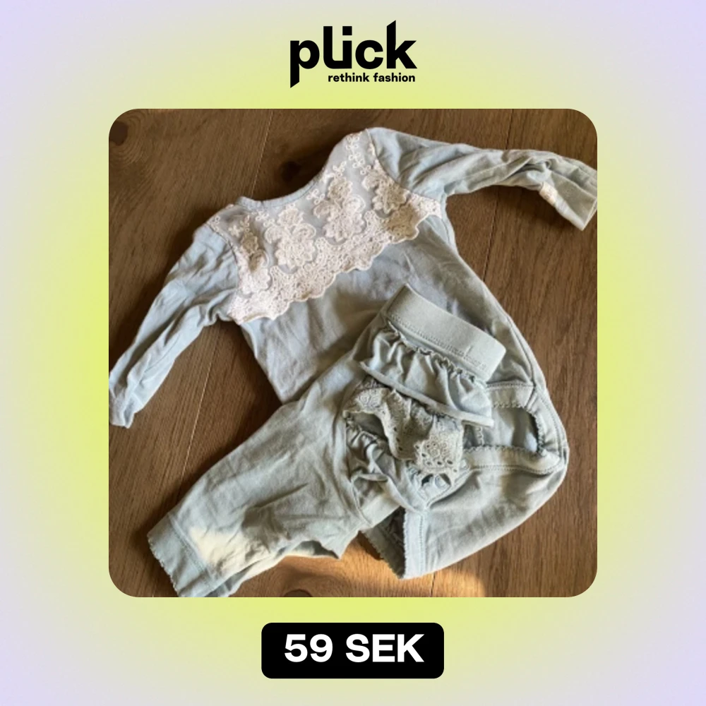 Fint använt skick. Blus/ tröja och byxa. Med spets och volanger