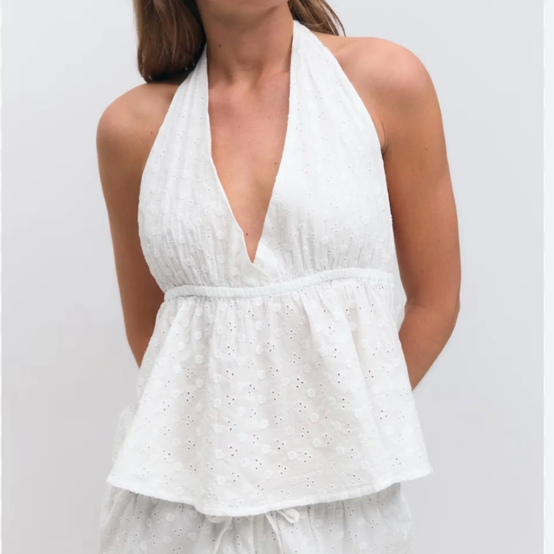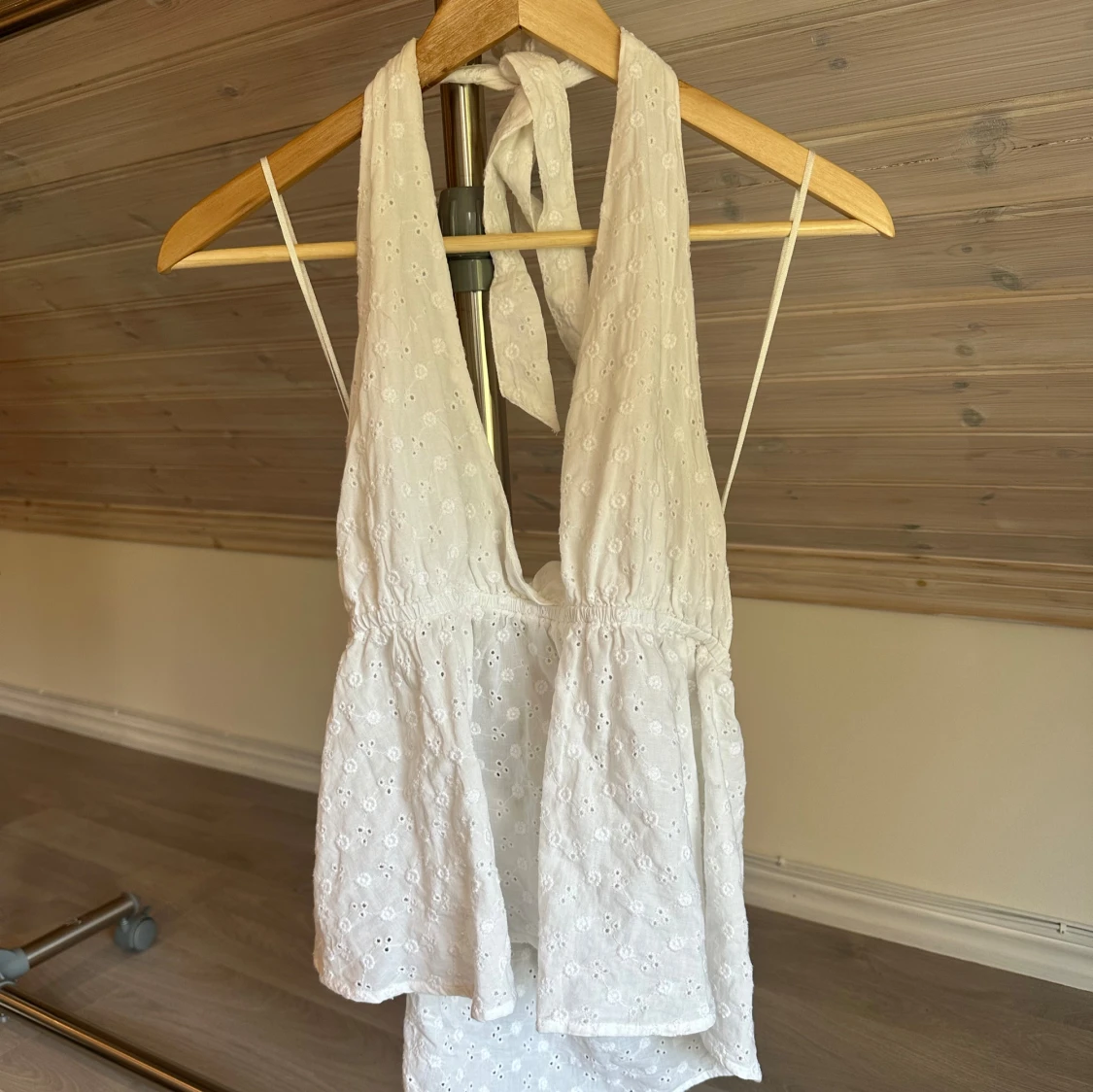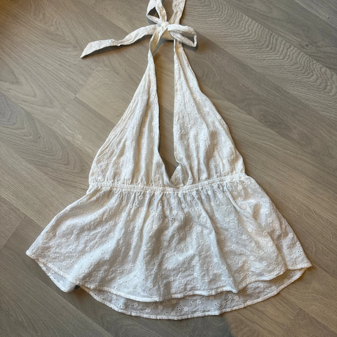 Vit halterneck topp med broderier, använd 1-2 ggr, inga defekter