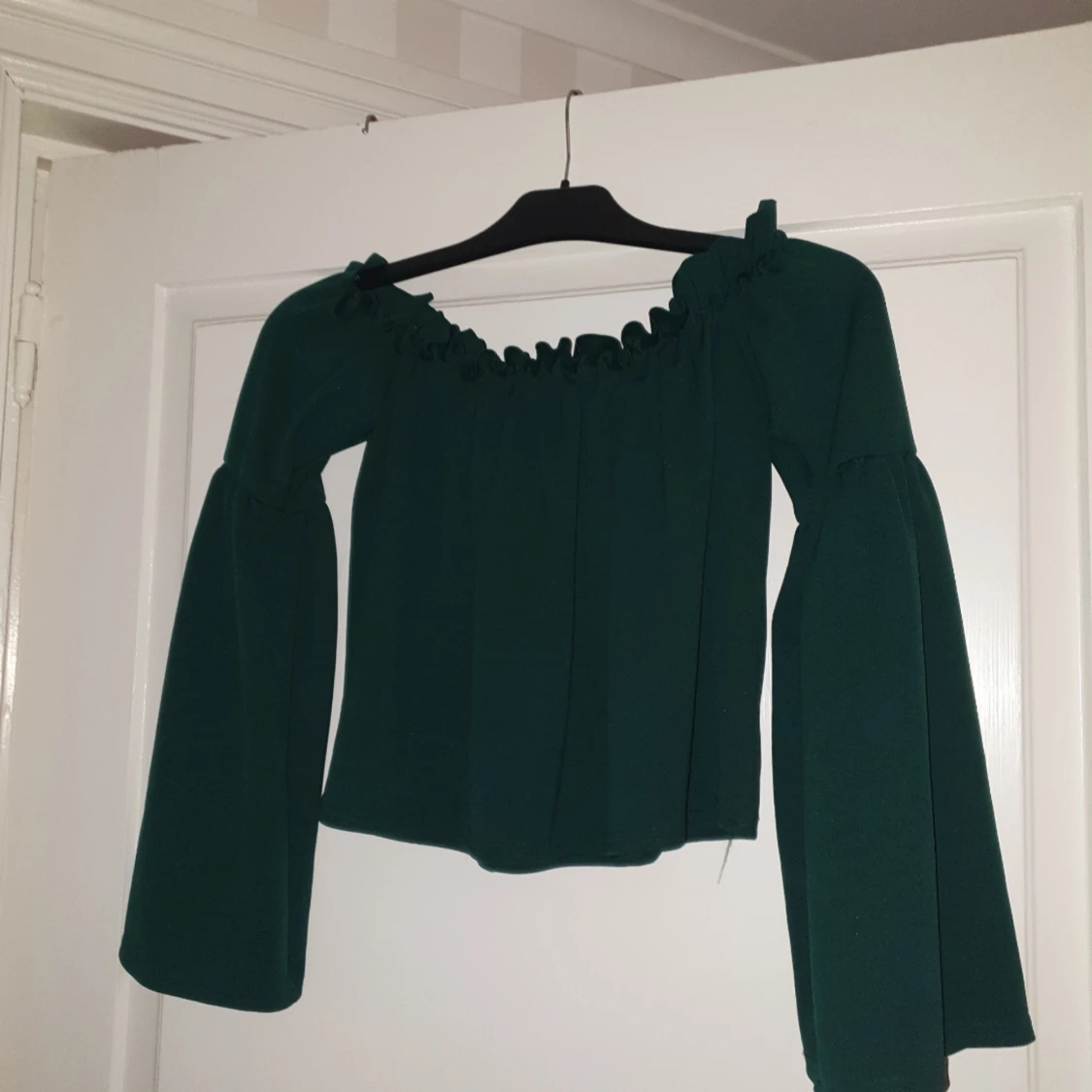 En grön off shoulder blus (mörkgrön) I mycket bra skick Tar endast swish och köparen står för frakt