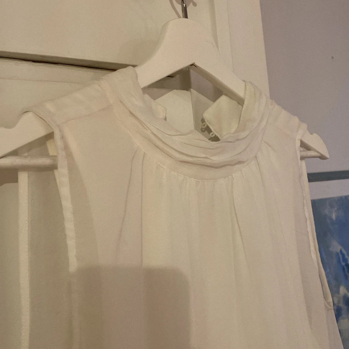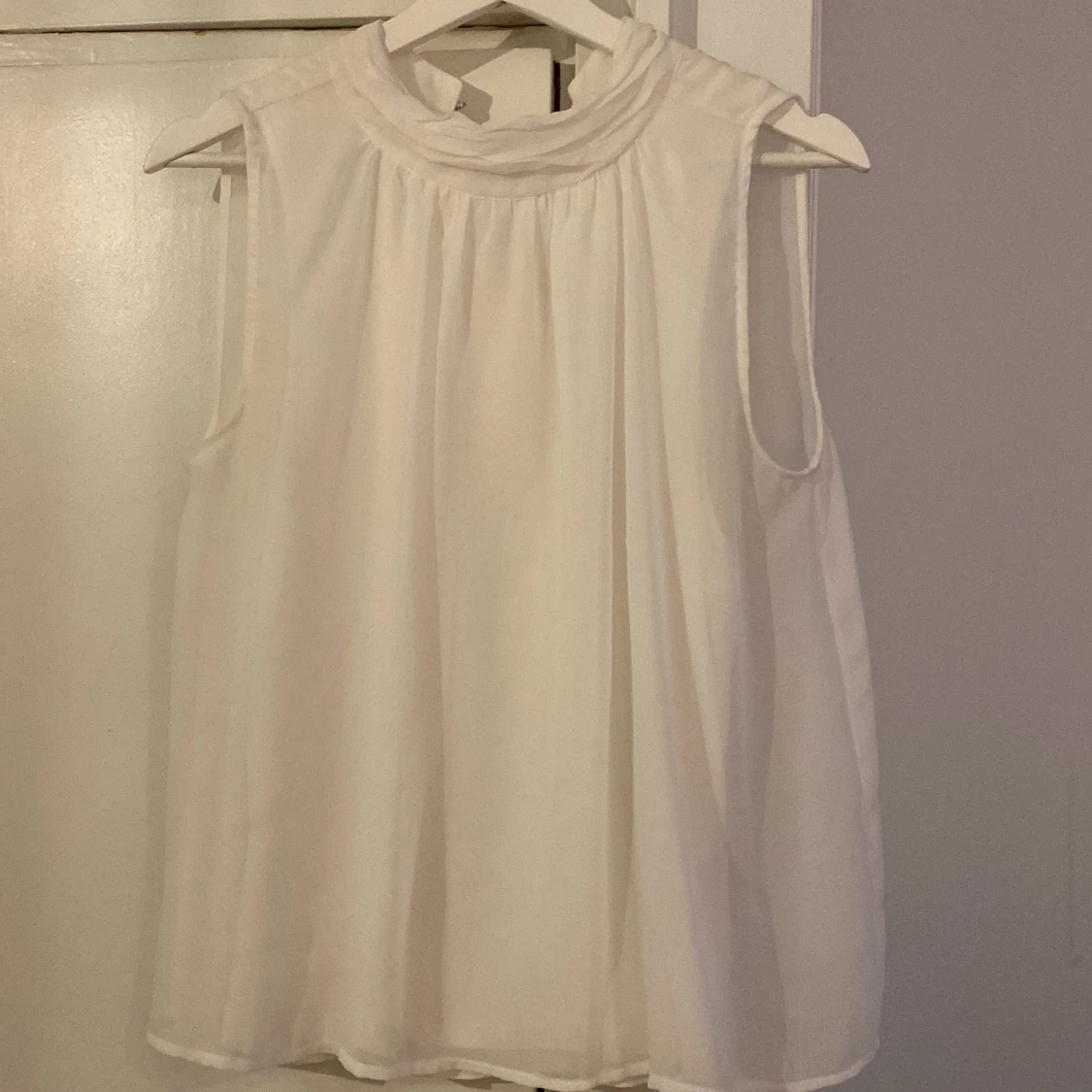 Ärmlös blus med hög ringning och flowy lager. Från Object
