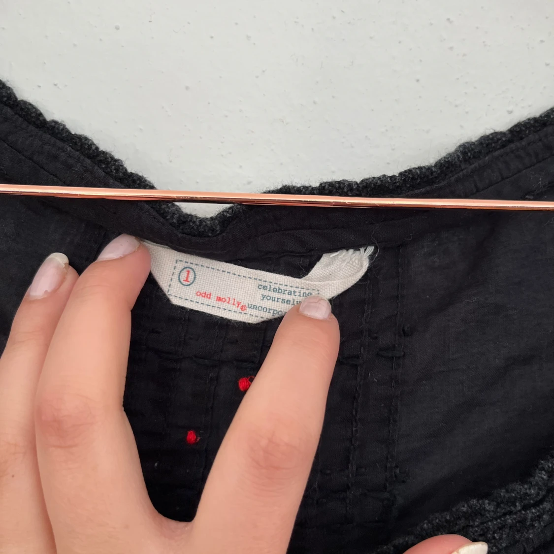 Svart blus från odd Molly med detaljer på baksidan och rosett där fram i storlek S