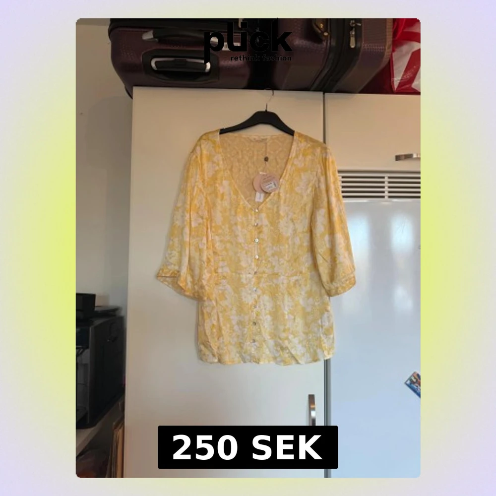 Snygg blus från Gina - Jättesöt blus!❣️Enda lilla defekten är att jag använt säkerhetsnål vid urigningen så det är en liten defekt från det men inget stort🥰Pris går att diskutera!