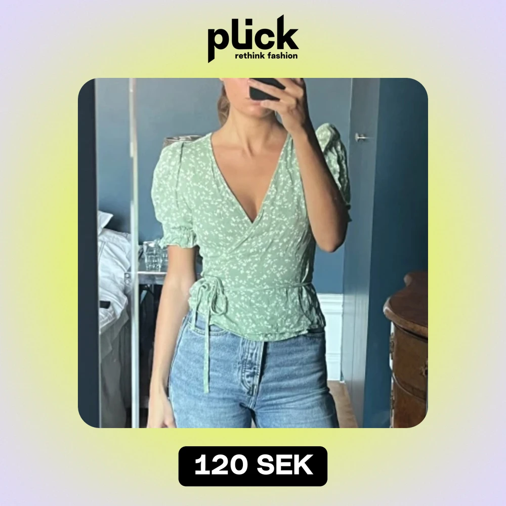 En söt och romantisk blus med ett vackert blommönster. Den har en v-ringning och korta puffärmar. Blusen är lätt och luftig, perfekt för varma dagar. Sista bilden visar passform. Storlek 36 Jätte bra skick.
