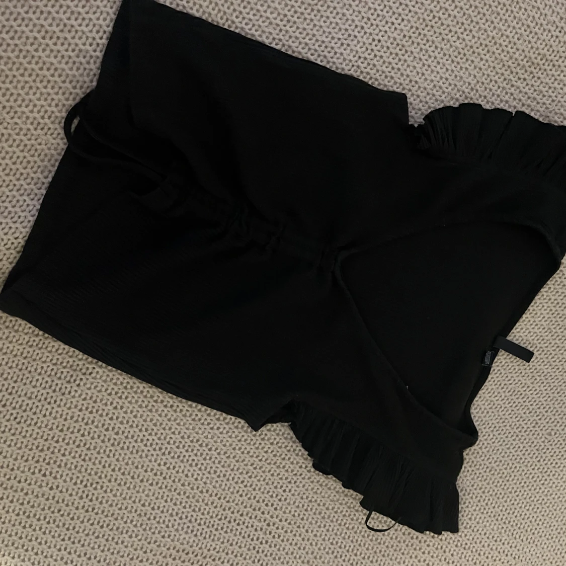 Svart tröja med v urringning med två band som gör tröjan tajtare och mer urringad