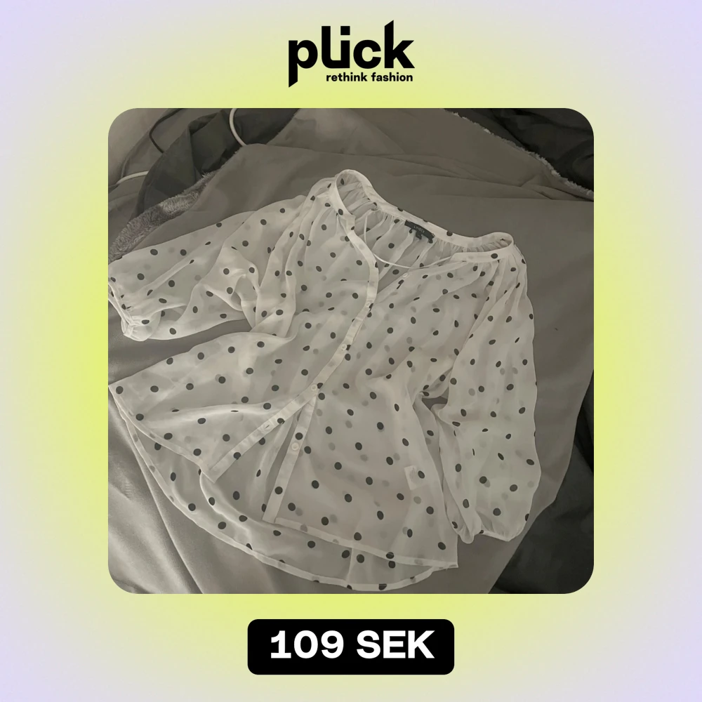 så fin vit prickig blus med puff armar från lindex stl xs! super fint skick 💓