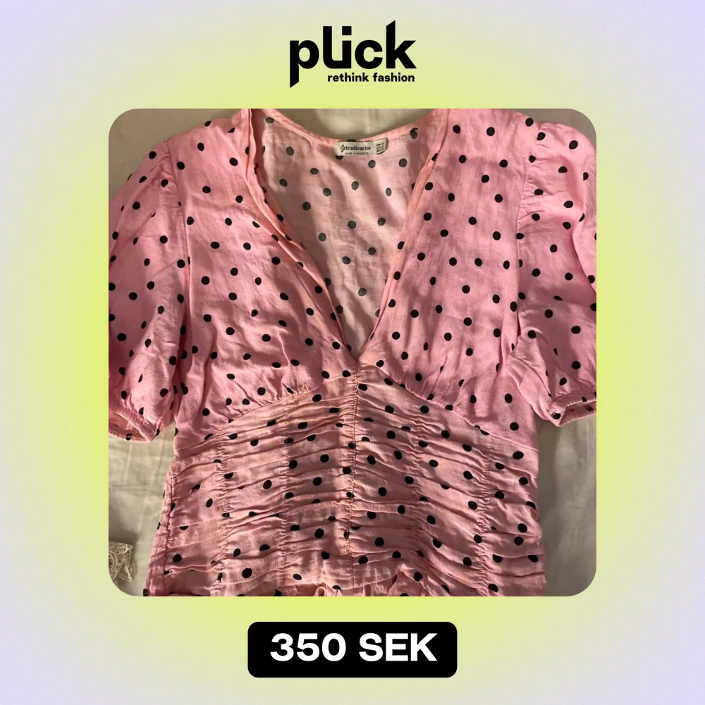 Så söt prickig topp från stradivarius, storlek m men passar en xs-s skulle jag säga.💗💗💗💗