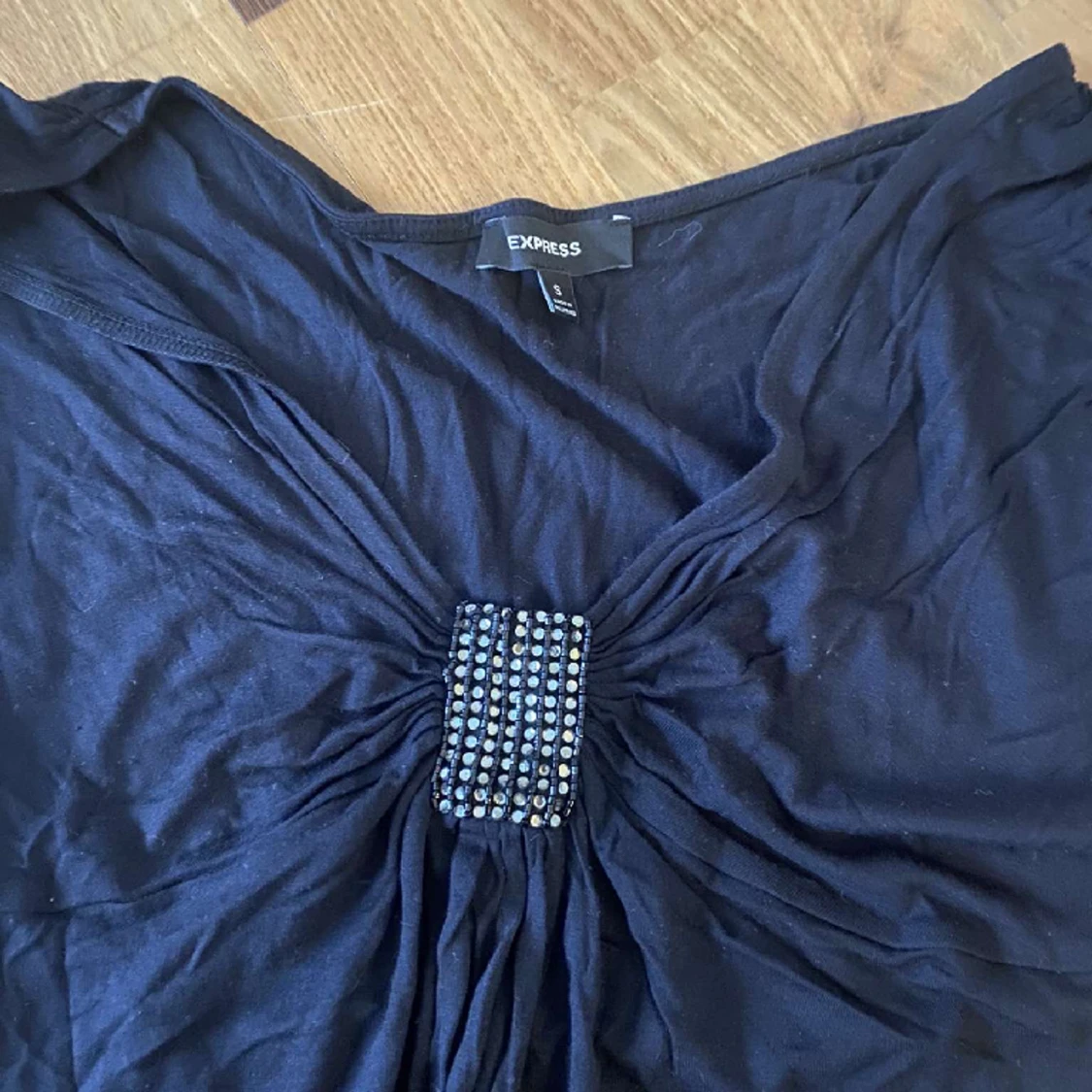 En superfin topp/T-shirt. Rätt så bra kvalite och lite tunnare tyg i modellen! Den är svart/marinblå och har lite som en ”slit” vid armen. Kontakta gärna via frågor💗