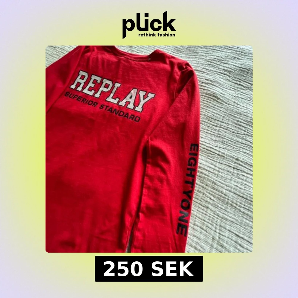 Snygg röd långärmad tröja från Replay med tryck 'REPLAY SUPERIOR STANDARD' på ryggen och 'EIGHTYONE' på ena ärmen. Tröjan är i mjuk bomull och har en klassisk rund halsringning. Perfekt för dig som gillar streetwear vibes.