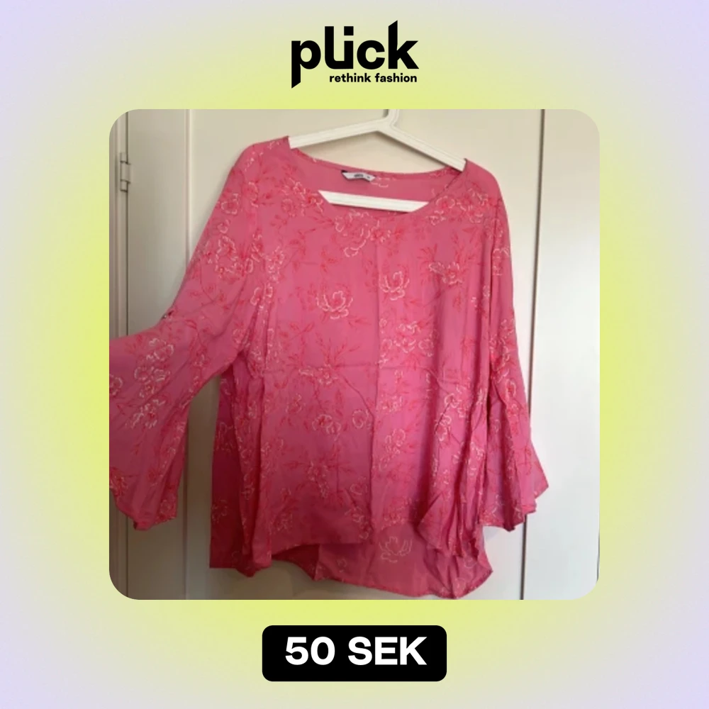 En blus i fint skick med vida armar, längre bak och kortare fram. Djur finns i hemmet!