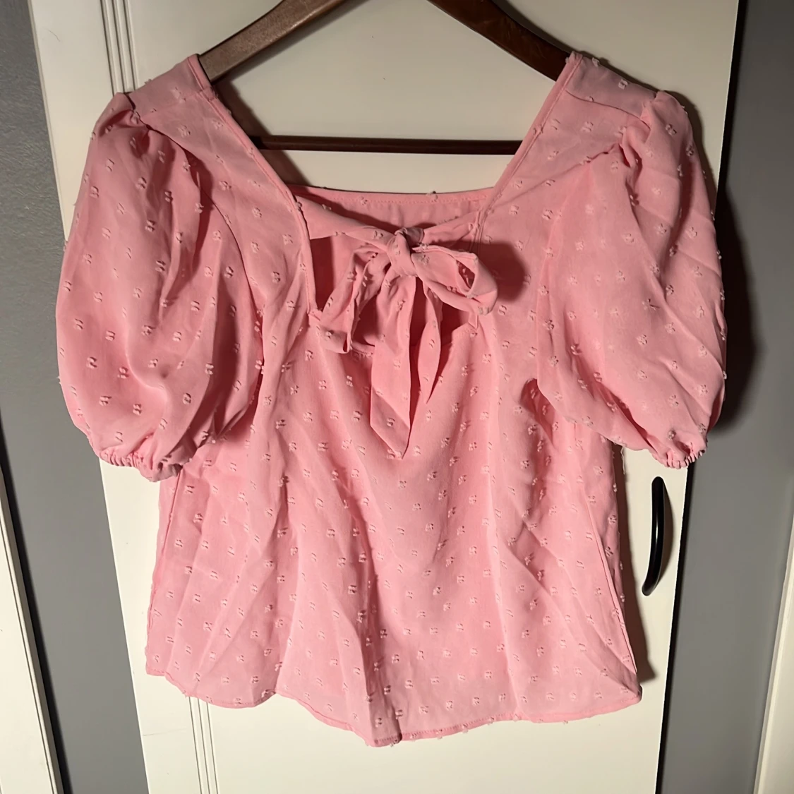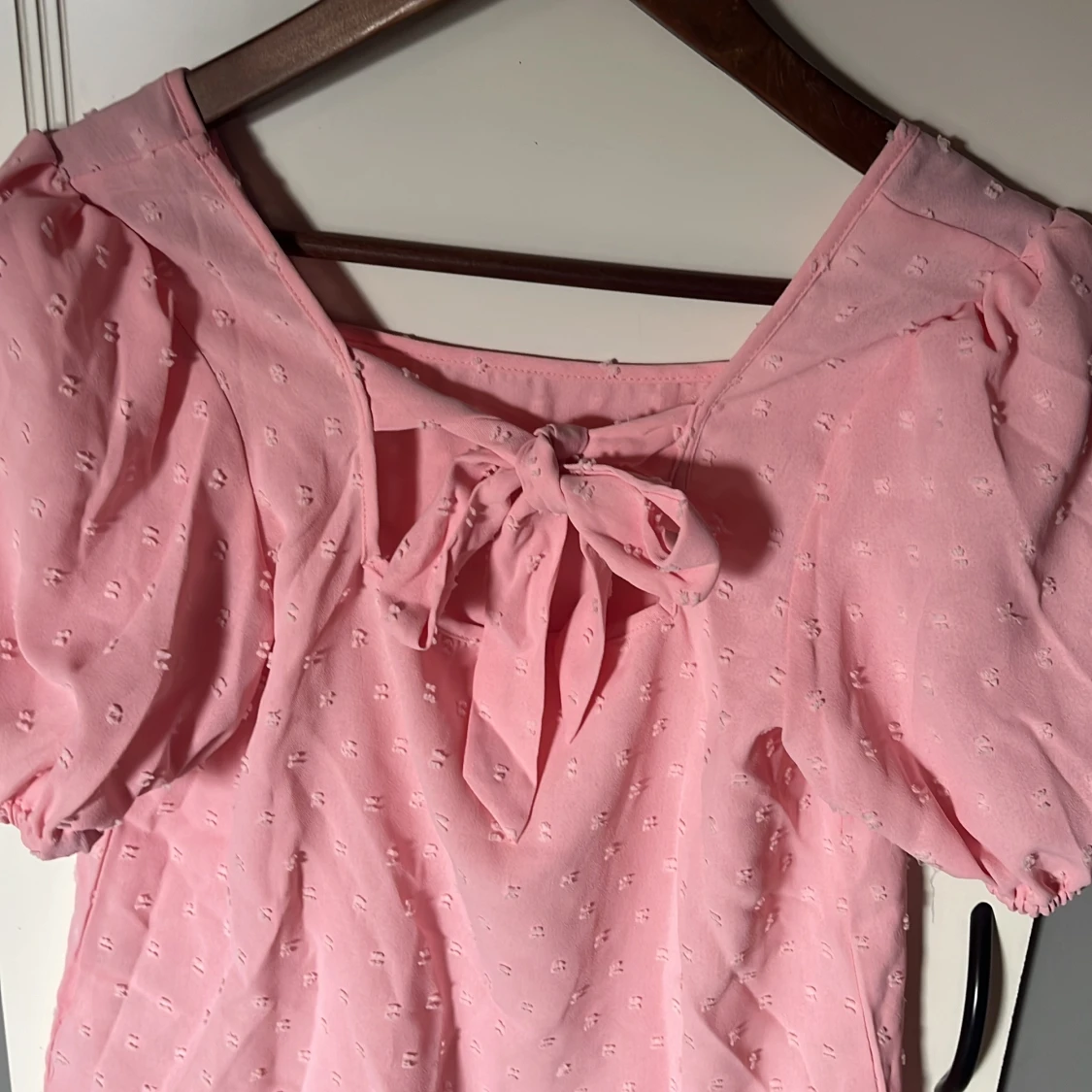 Säljer min rosa blus som är från Shein. Storlek S. En roset ibak på tröjan. Tunt material.