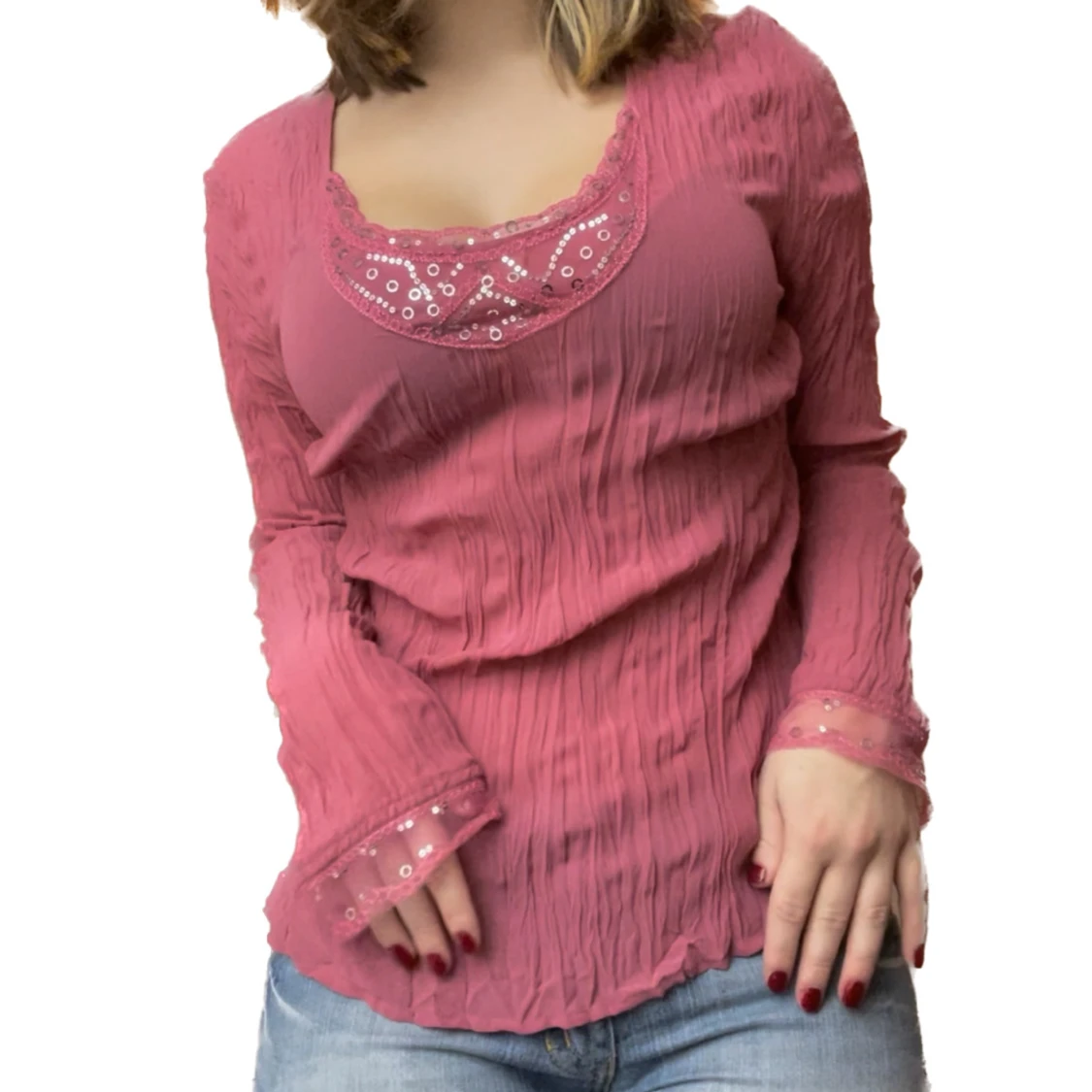 Jätte söt rosa långärmad tröja/blus med glitter💓⭐️ knappt använd😁 står storlek L men skulle mer säga S/M