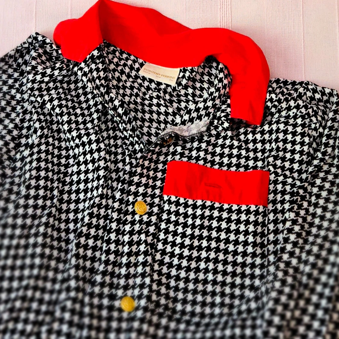 Svart vit röd guld skjorta. Kom inte till användning. Står st 40. Passar st 36 och 38. Medium. Mjuk. Möts i Göteborg. 60kr. Dorothy perkins