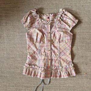 Söt rutig blus med korsettrygg. Köpt från bodyline
