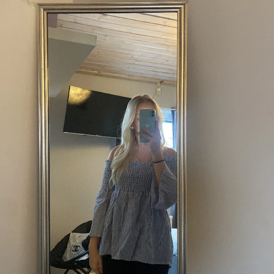 Blå vit blus