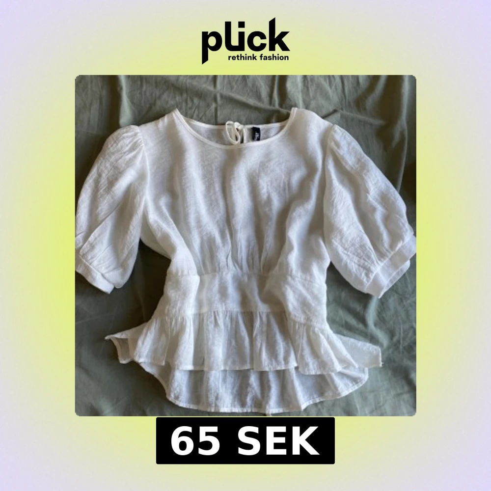 Superfin vit blus med puffiga korta ärmar, volang nertill och knytning i ryggen. Tillverkad i ett luftigt linnematerial som ger en avslappnad men ändå söt look.