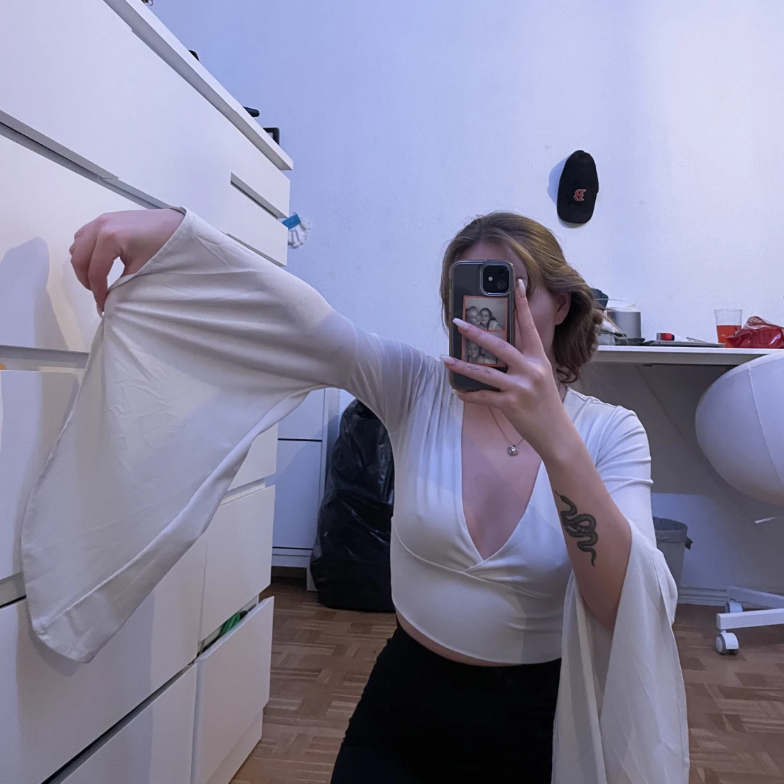 Crop top, med ”flowiga” ärmar, sitter väldigt fint på, andvänds ej lika mycke som jag tänkt