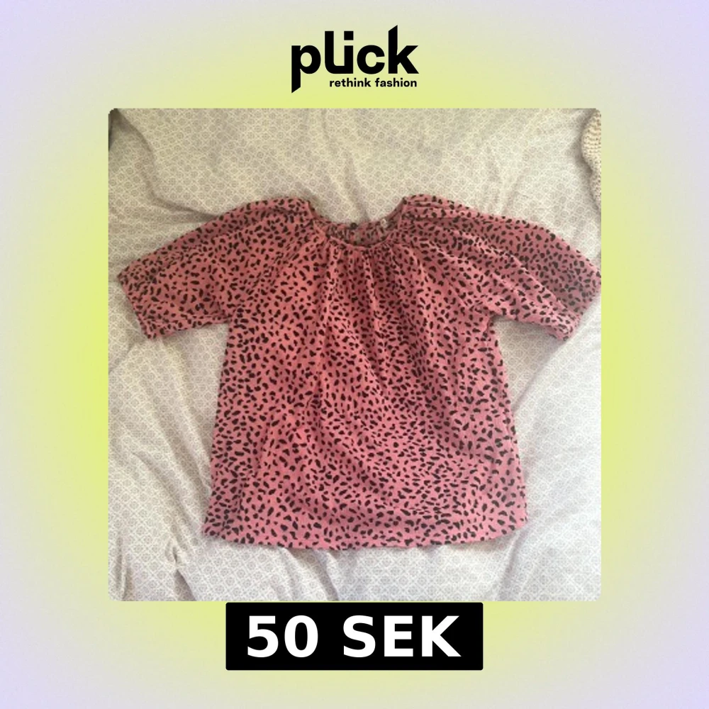 Säljer en rosa blus från Kids Only med svart leopardmönster. Blusen har korta ärmar, rund halsringning och knapp i nacken. Är storlek 146/152 men passar mig med XS/S.