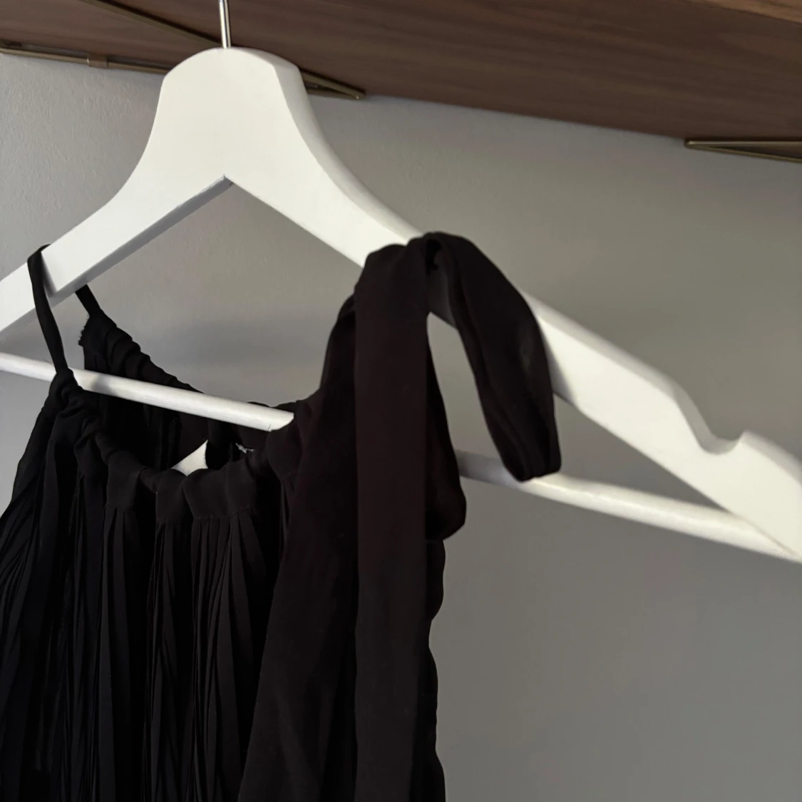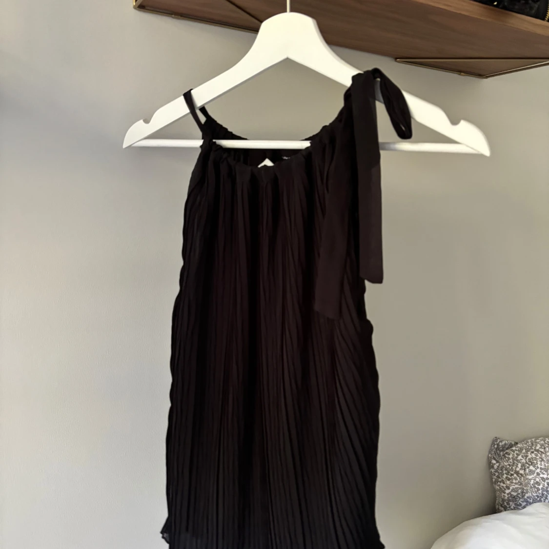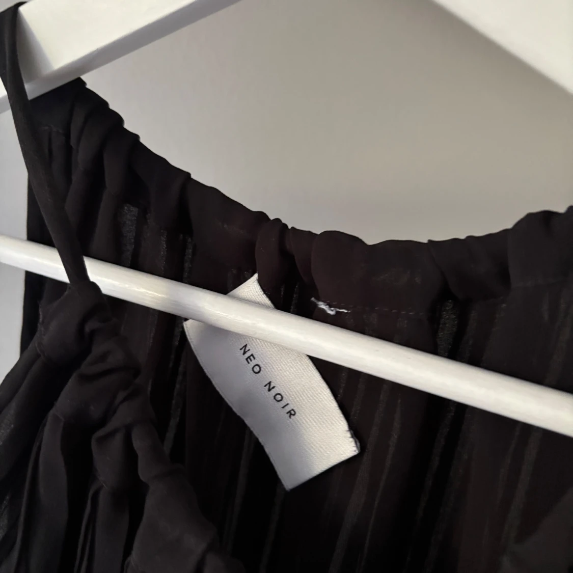 Supersnygg svart plisserad blus från Neo Noir med oneshoulder och knytband på axeln. Lappen där det står neo noir på är halvt av men i övrigt är den i bra skick
