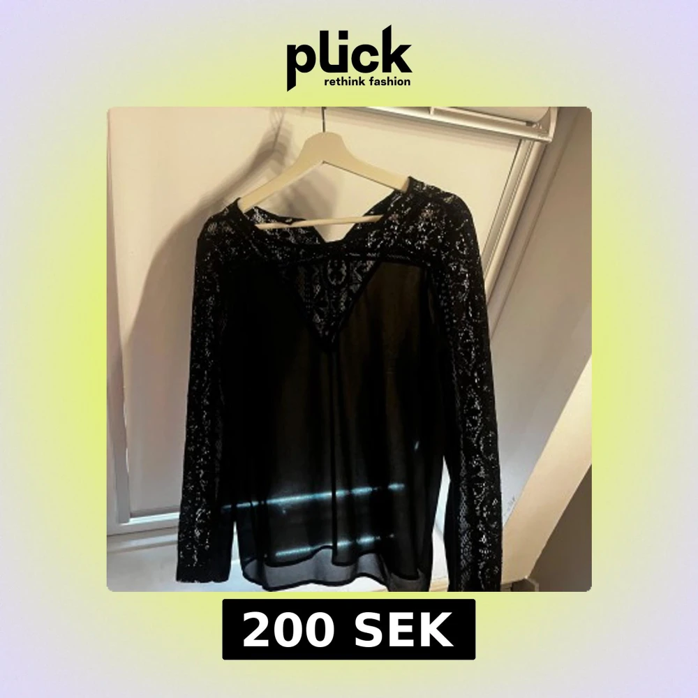 Säljer en svart blus med transparent spets upptill och på ärmarna. Blusen har vackra spetsdetaljer både fram och bak samt långa ärmar. Perfekt för dig som gillar en elegant och stilren look.
