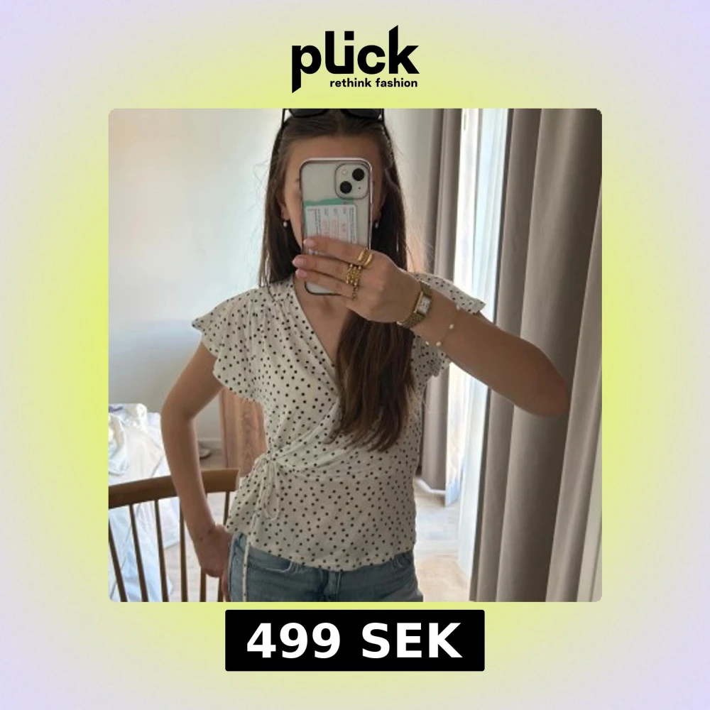 Säljer min superfina prickiga Volangtopp!💞💞 tröjan har volangärm och ett knyte på vänstra sidan💞 Storlek S men passar Xs och S ! Inga defekter alls!!💞skriv vid frågor