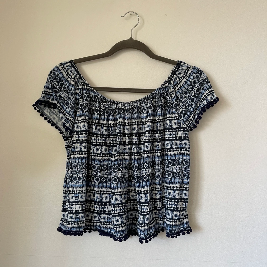 Blå topp som jag har i 2 olika storlekar, en S och en M!