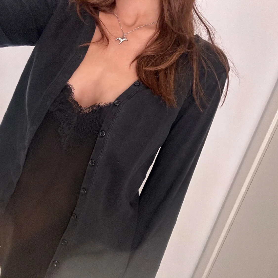 Gullig svart kofta i strl M men passar också mig som har S💕