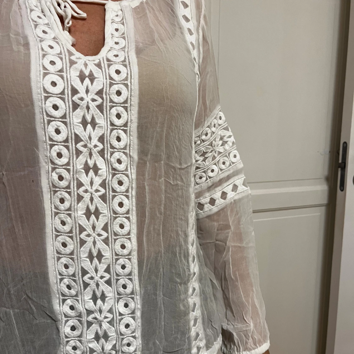 Vit genomskinlig blus med broderier