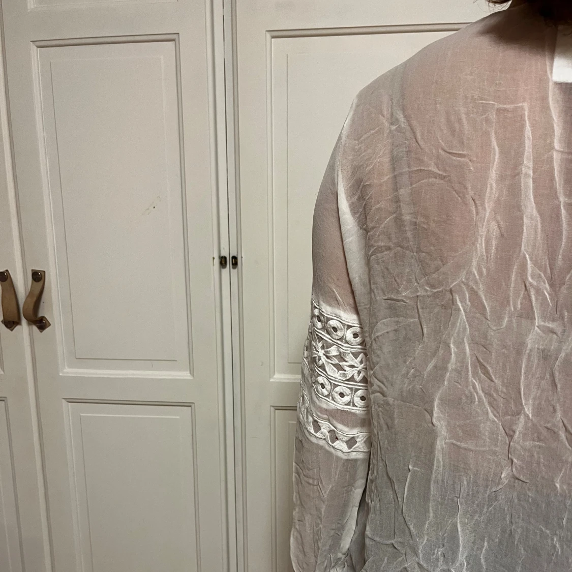 Vit långarmad genomskinlig blus med broderier från Cirkus