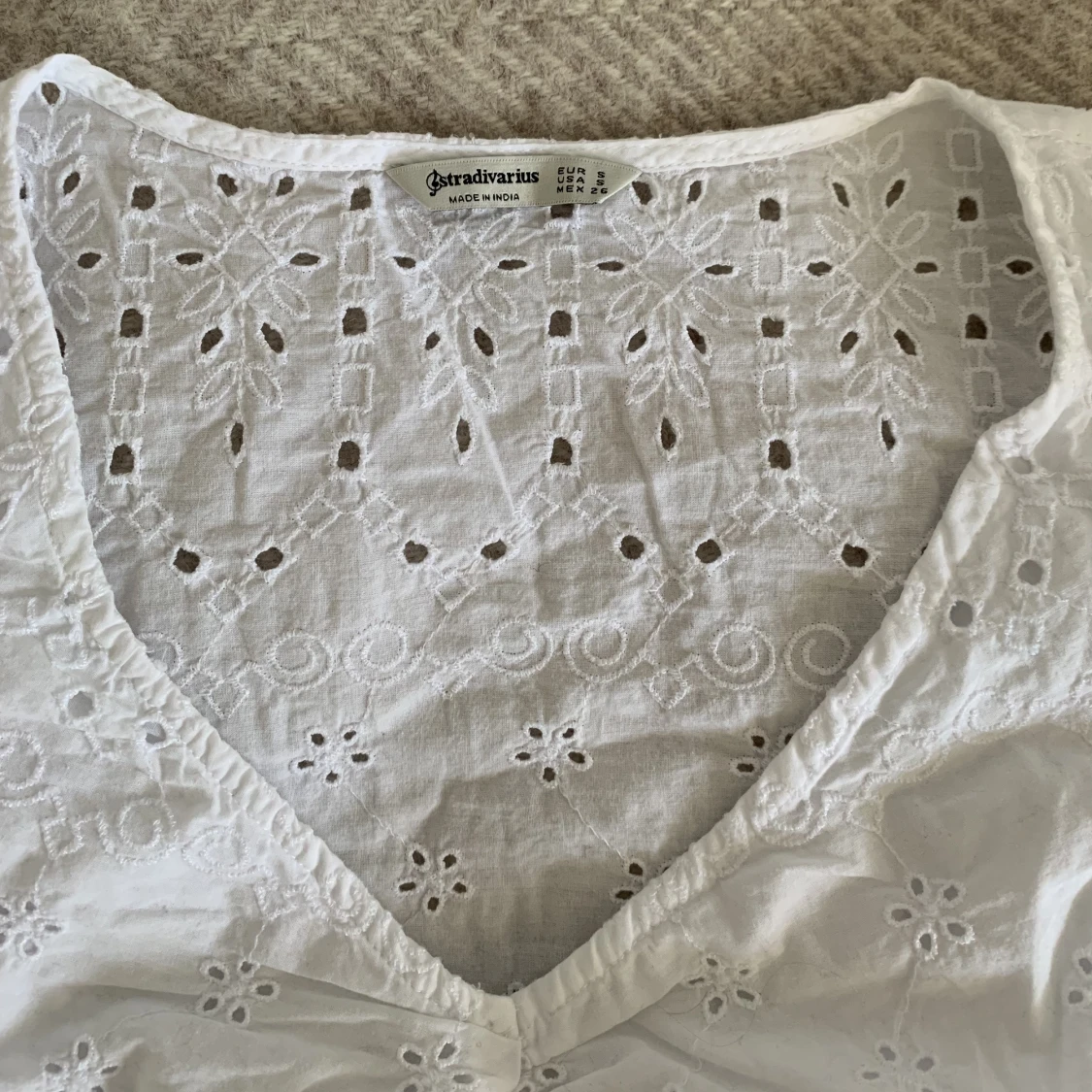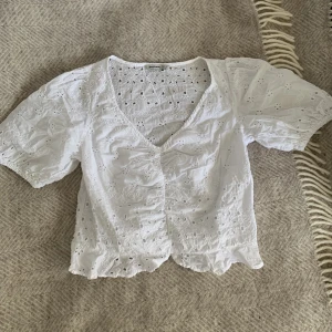 Vit blus från Stradivarius i storlek S. Använd vid enstaka tillfälle. 100 kr och den är din!