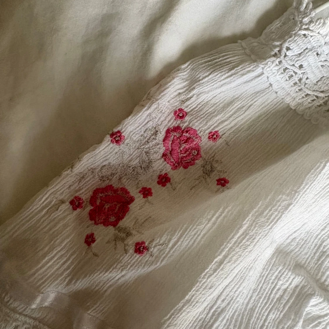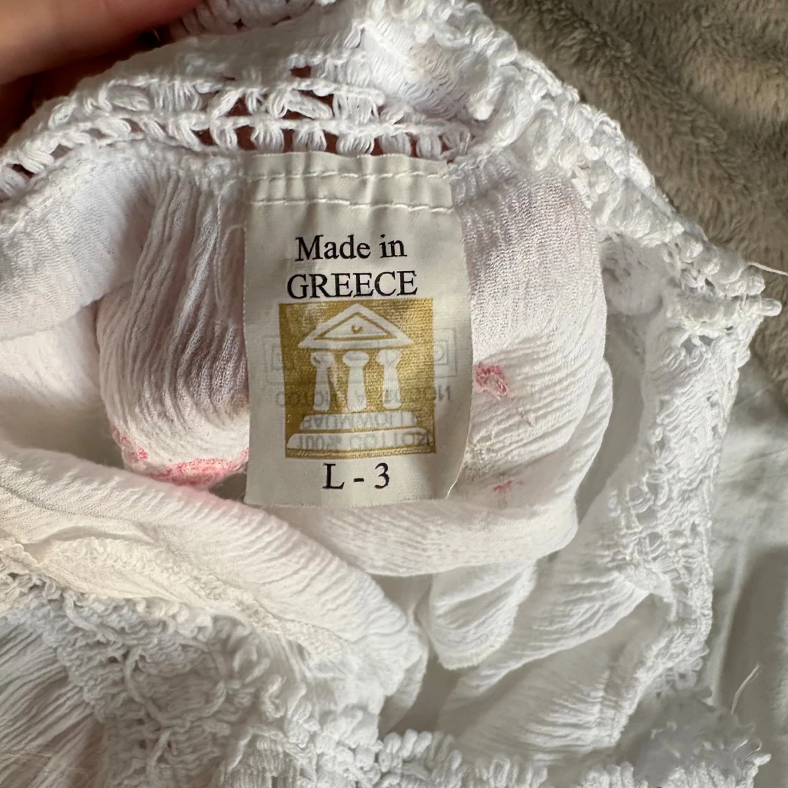 den är i barnstorlek i L men passar en xs/s! Kanske större också! Så fint tryck på och sitter som en söt blus skulle jag vilja säga. Köpt i cypern i somras!