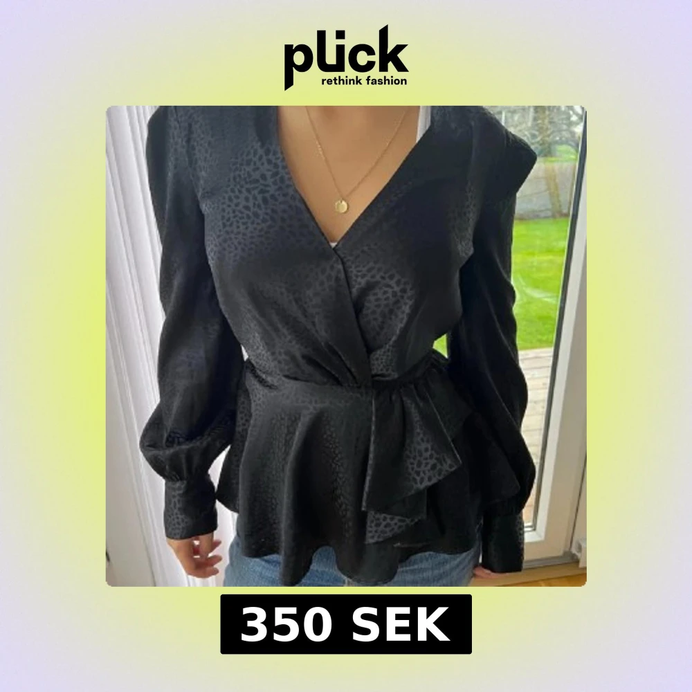 Svart mönstrad satin-blus i nyskick! Endast anvĂ€nd en gĂ„ng. Passar bra till bĂ„de fest och vardagđ€©đ€©