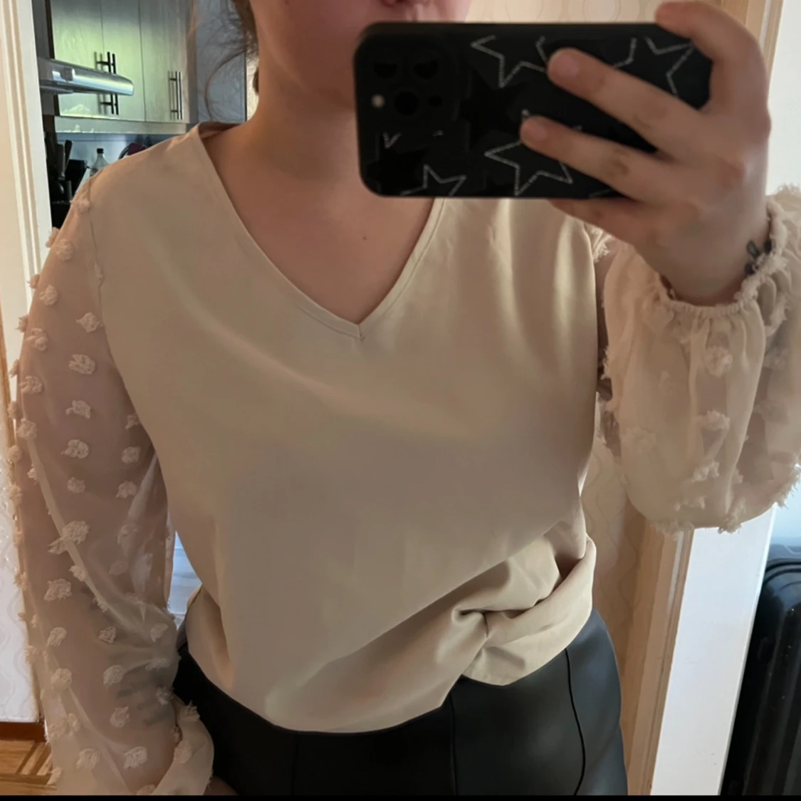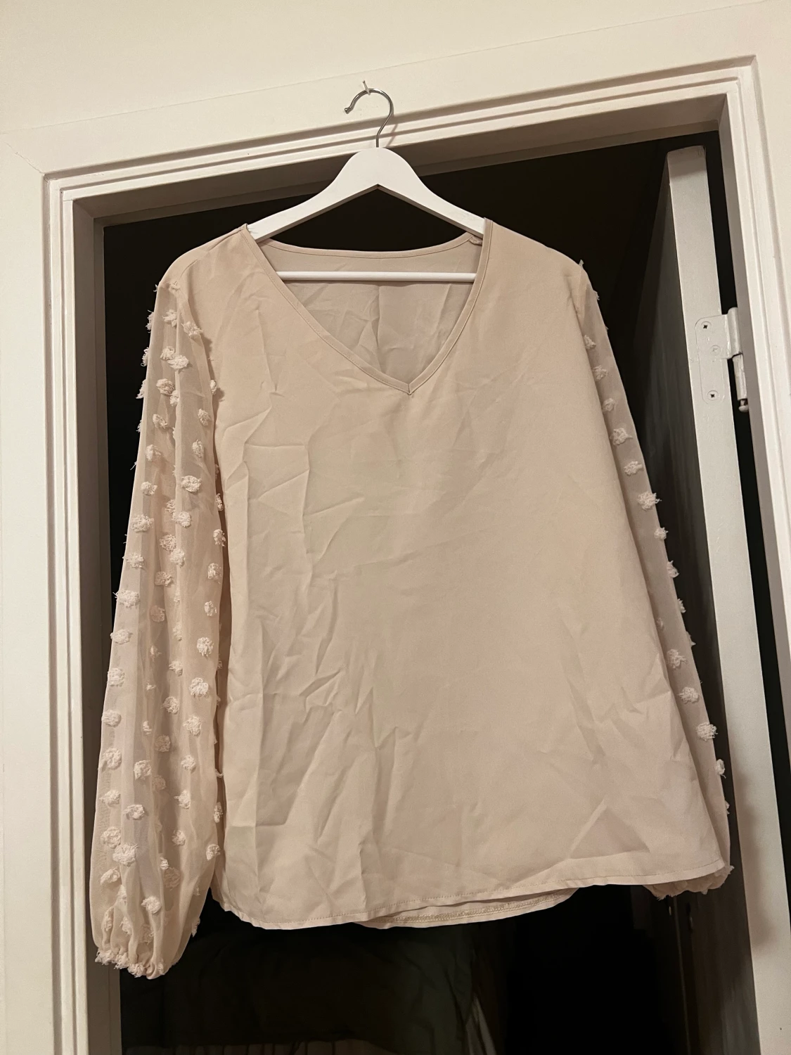 En fin beige topp ifrån Shein i storlek L. Toppen är normal i storleken och är i bra skick!🫶🏻 Den är använd vid få tillfällen och finns inga skador eller liknande ❤️ 41% polyester 59% polymide