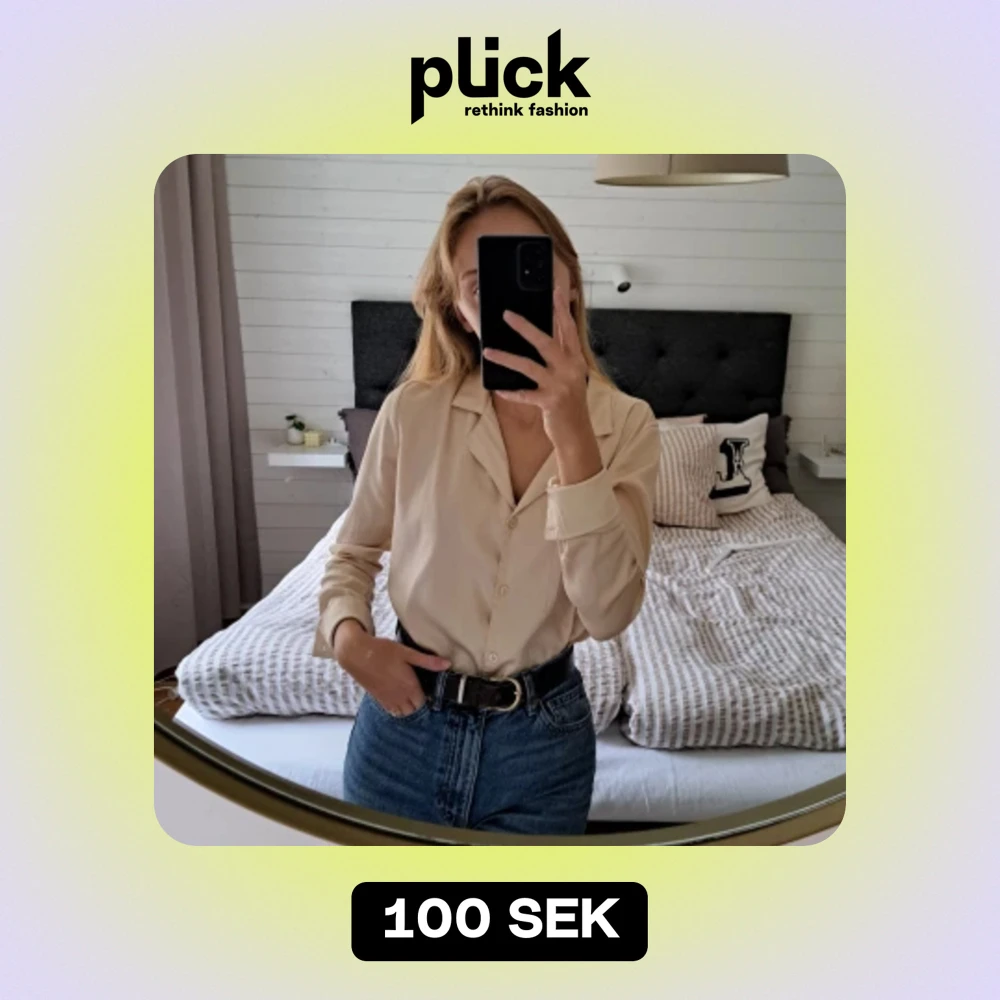 Beige/ljusgul sidenblus från Chiquelle i storlek XS. Den är i fint skick bortsett från en liten, ljus fläck på ena armen (se sista bilden). Kan eventuellt gå att få bort med fläckborttagning (har ej testat) men annars inget man tänker på.