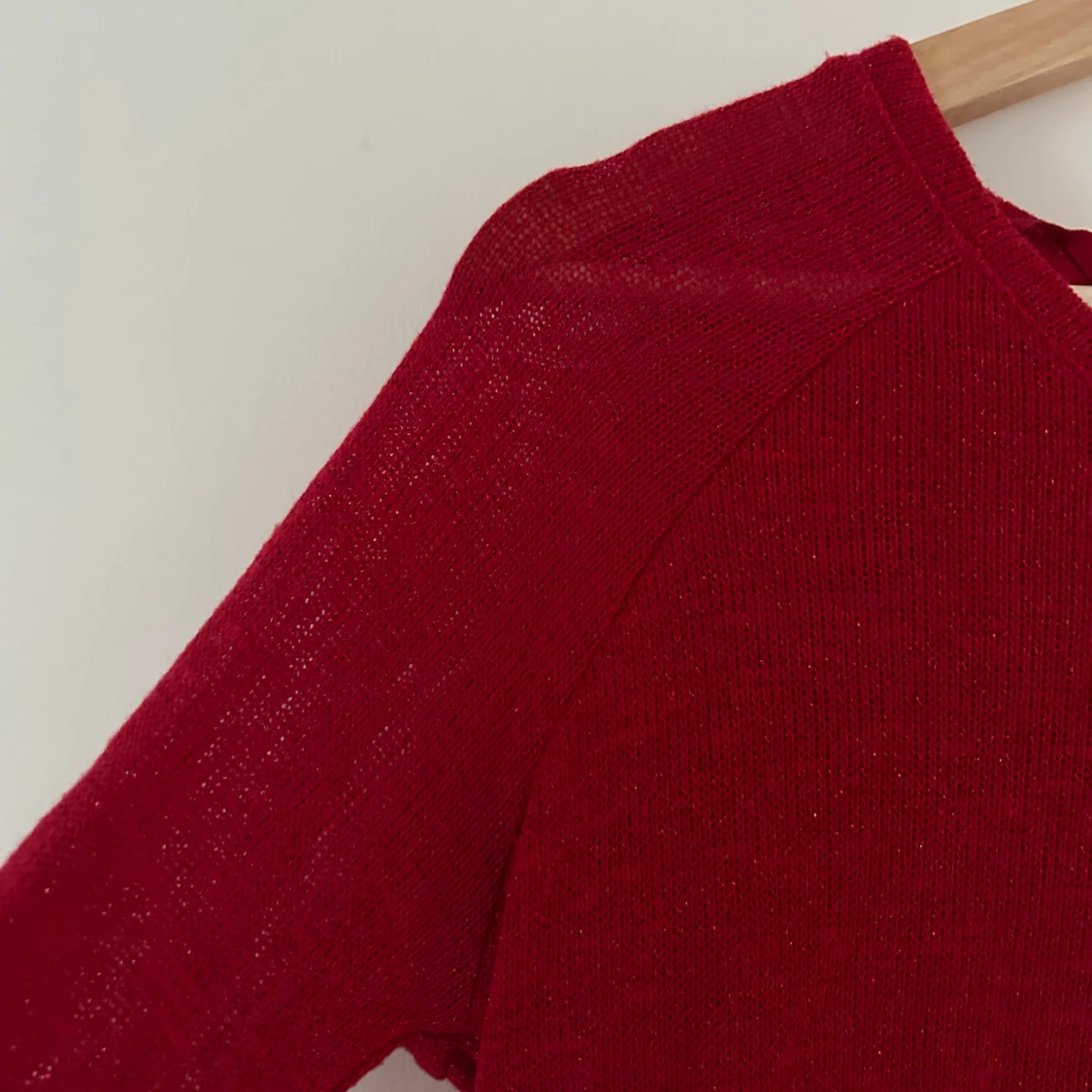 Snygg röd tröja från H&M med glittrande detaljer. Tröjan har trekvartsärmar och en bekväm passform. Perfekt för julen!