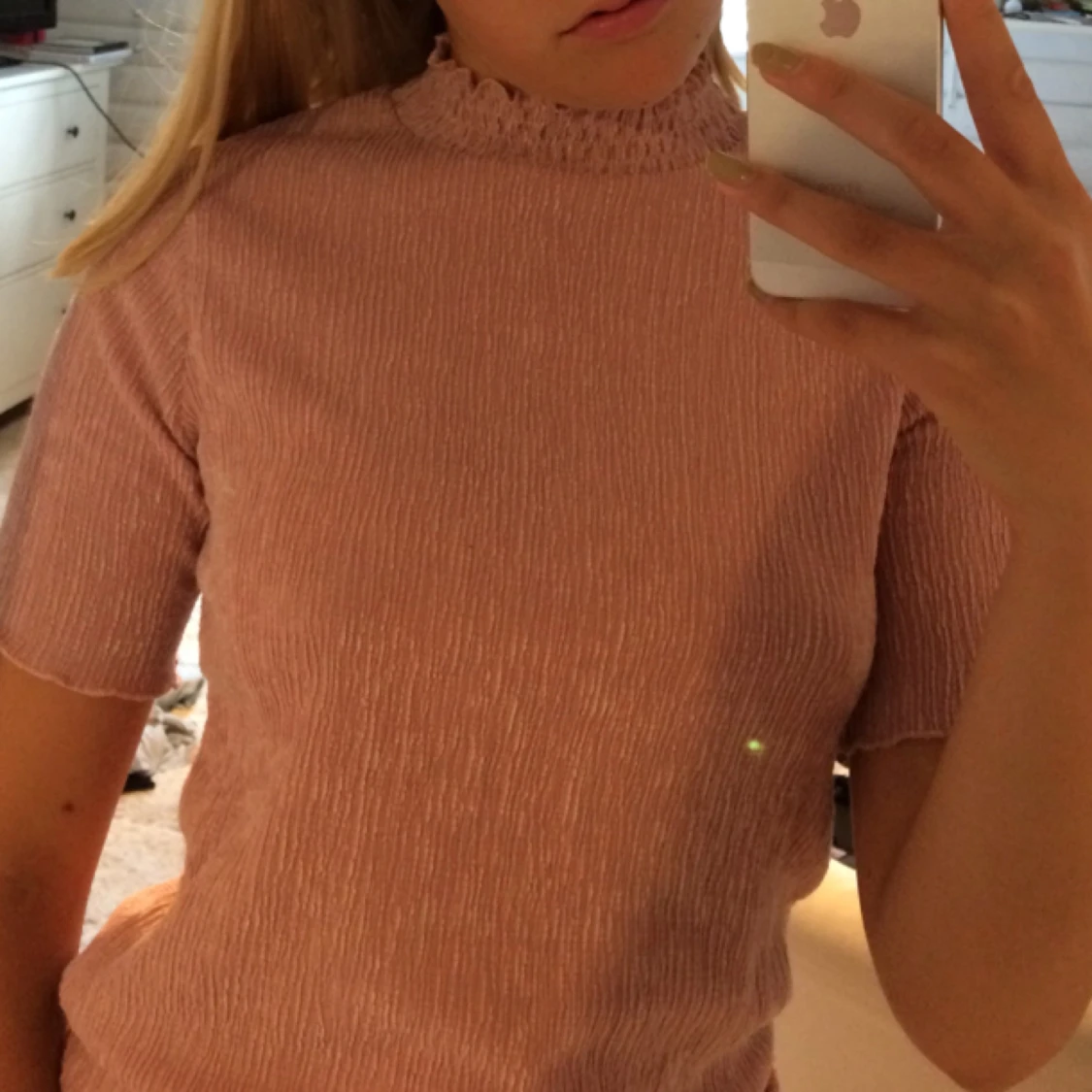 Plisserad blus i gammelrosa färg. Inköpt för ett år sedan och endast använd vid ett tillfälle, alltså i nyskick. Finns att hämta i Stockholm alternativt fraktas mot en fraktkostnad. Från ett djur och rök-fritt hem.