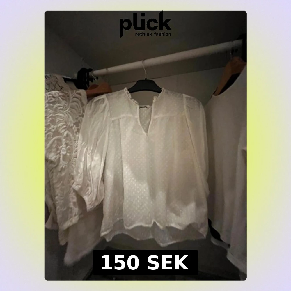 Jätte söt vit blus med lite större ärmar och en knapp vid kragen som kan stängas, Kommer inte till användning😊👍