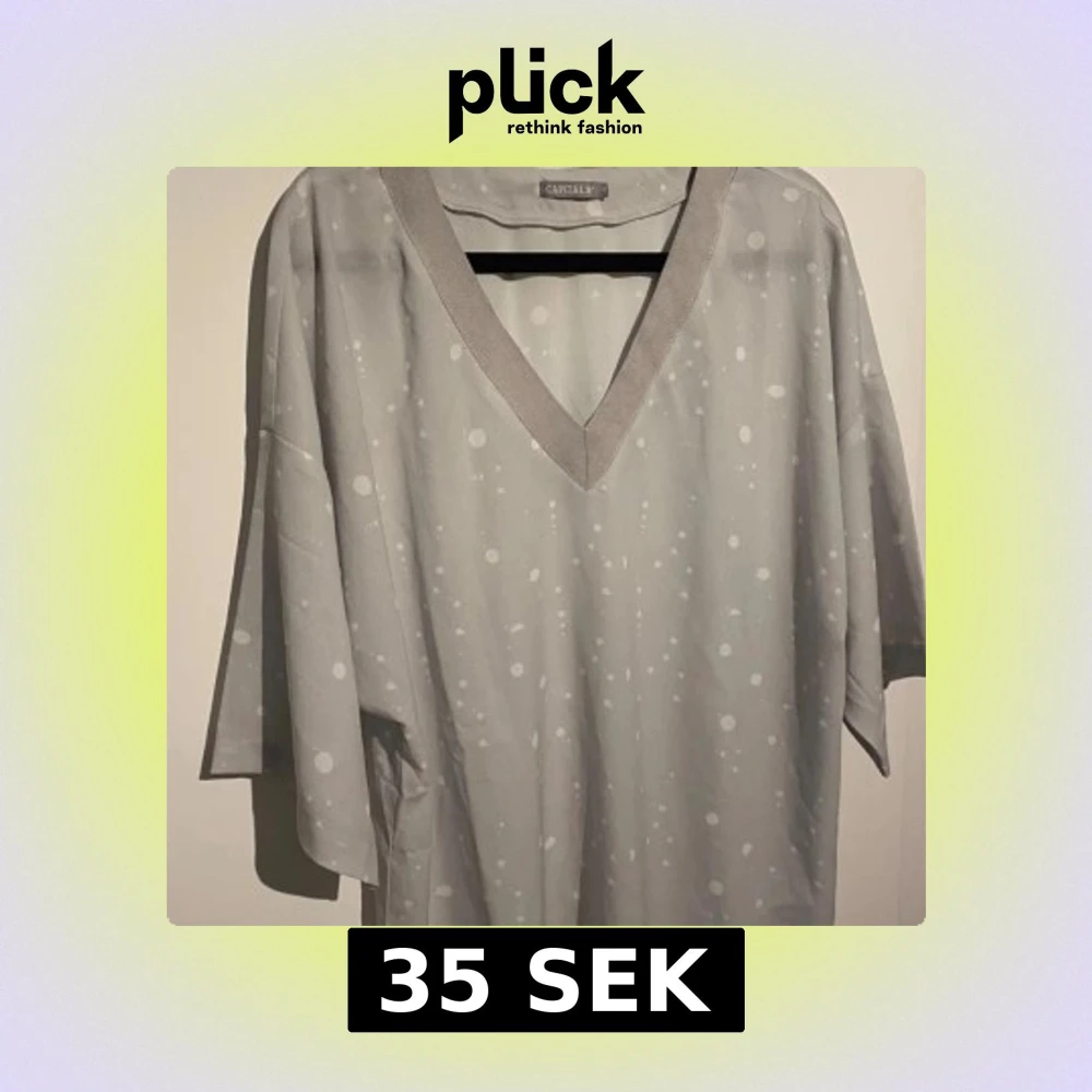 Oversized grå t-shirt från Capital B med vita prickar och bred v-ringning. T-shirten har korta ärmar och är tillverkad i ett mjukt, lätt material som känns skönt mot huden. Perfekt för dig som gillar en chill och avslappnad stil. Luftigt plagg! Är helt ny, men pris-taggen har fallit bort! , säg till för fler bilder!