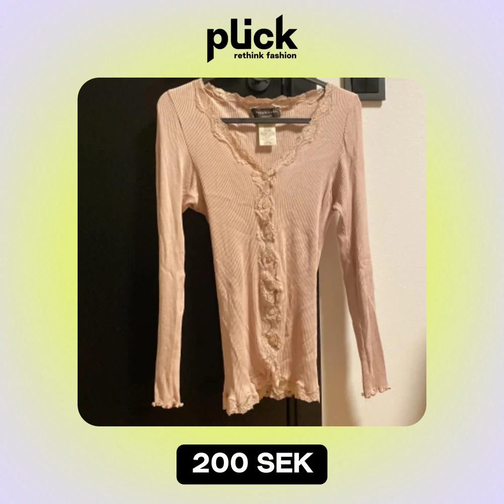 Rosa fin långärmad topp. Vackra spets detaljer. Den är stretchig och formar sig fint efter kroppen.