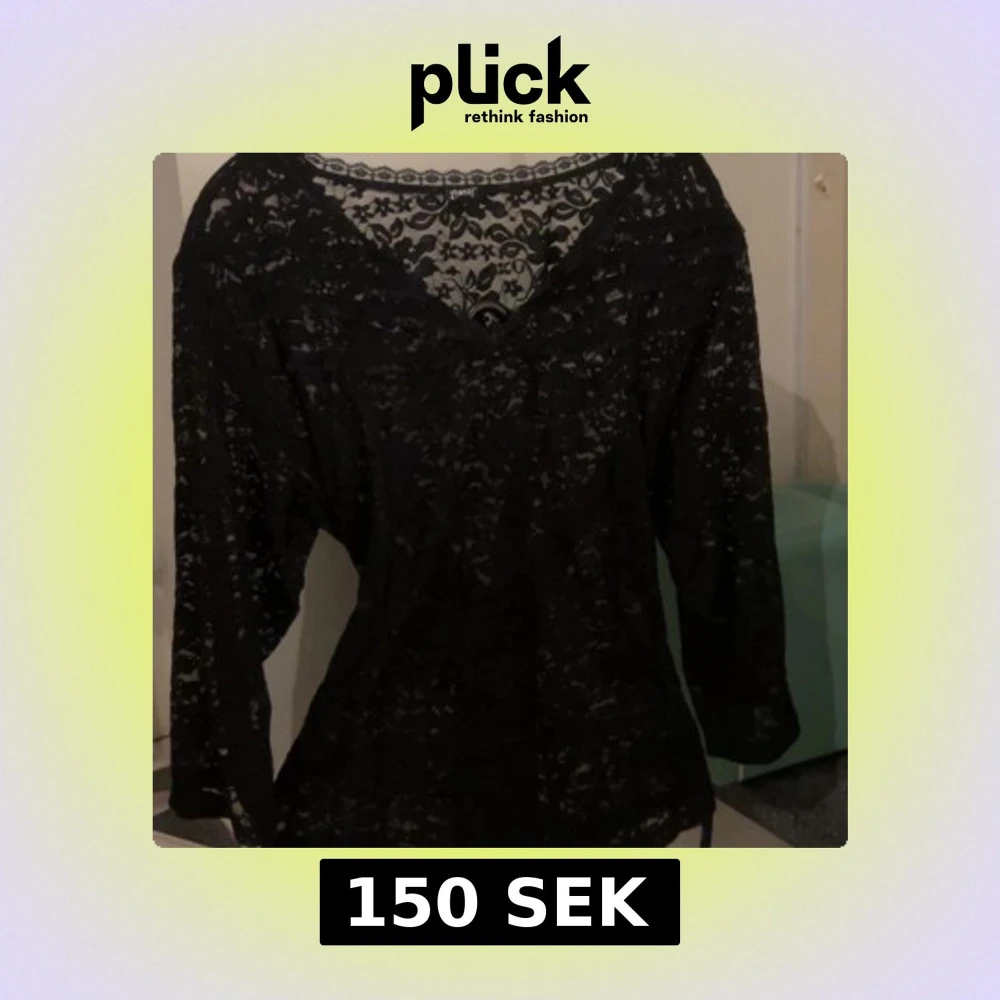 Svart spetsblus - Säljer en elegant svart spetsblus med långärmad design. Perfekt för både fest och vardag. Blusen har ett vackert mönster och är i mycket bra skick.