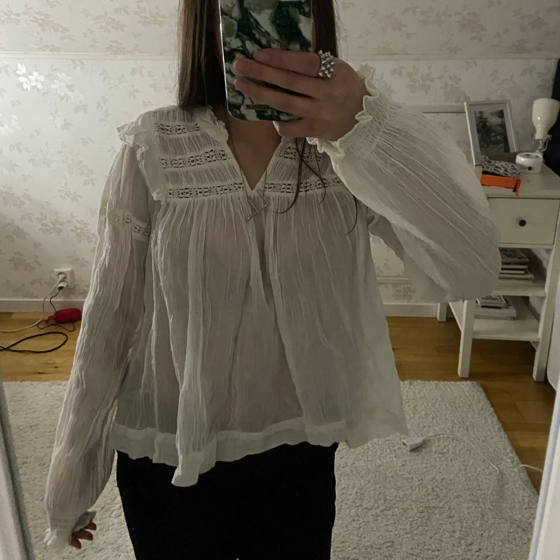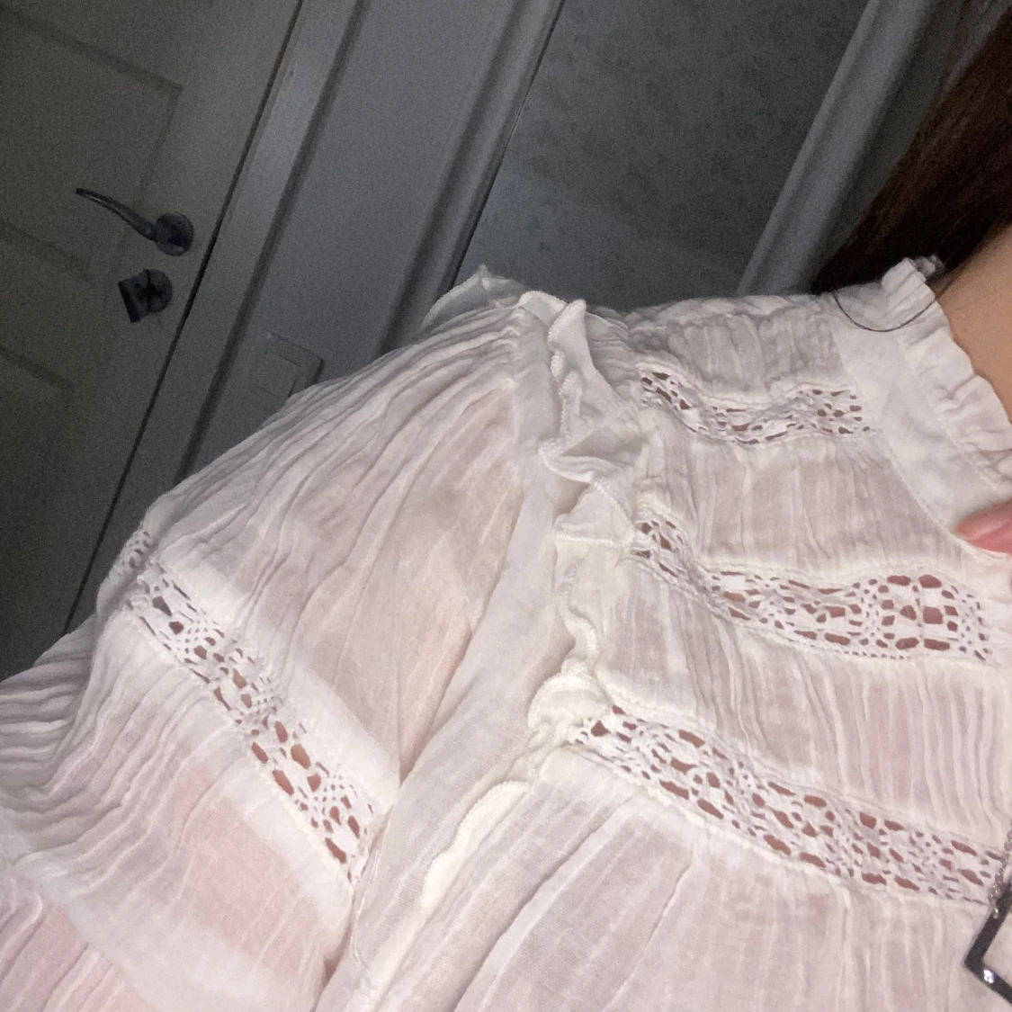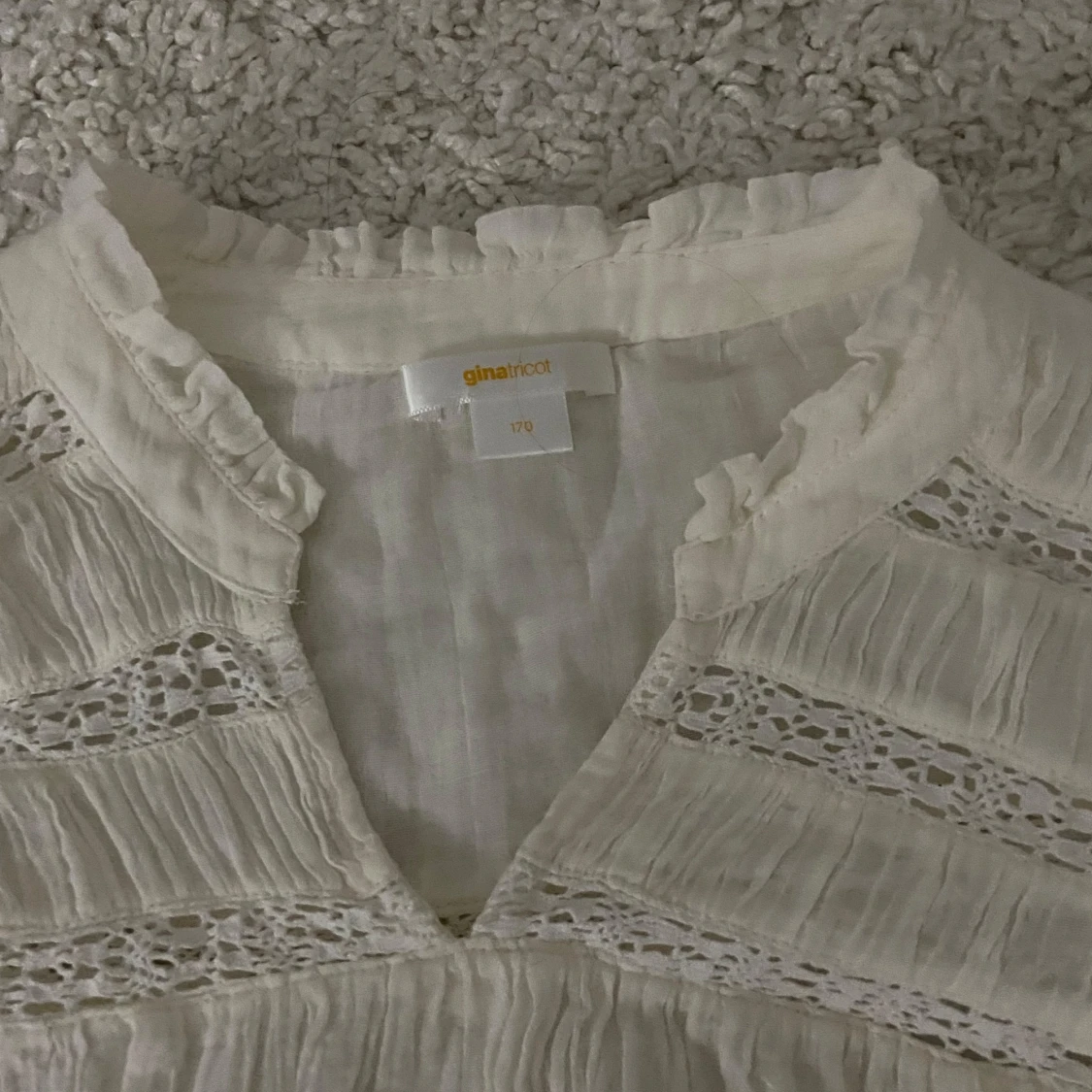 Blus från Gina Young i storlek 170 (typ som en S). Den är lite ljus vit typ. Den är endast testad 2 gånger och jag säljer den för den inte kommer till användning. Sjukt snygg och skön❤️köpt för 230kr