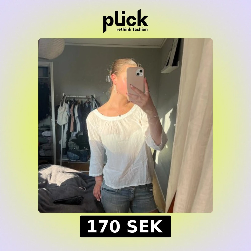 Säljer en luftig vit blus i tunn bomull med rund halsringning och trekvartsärm. Perfekt för varma dagar och enkel att styla till jeans eller kjol. Blusen har en avslappnad passform och fina rynkade detaljer vid halsen. Hör av er vid frågor eller prisförslag!🩷🩷