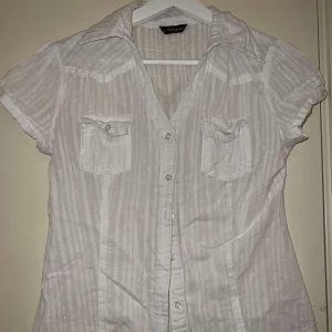En somrig vit blus, jättesöt, den är anvdänd fåtal gånger darför säljs den! Kan skicka fler bilder om det behövs, priset kan diskuteras🤗