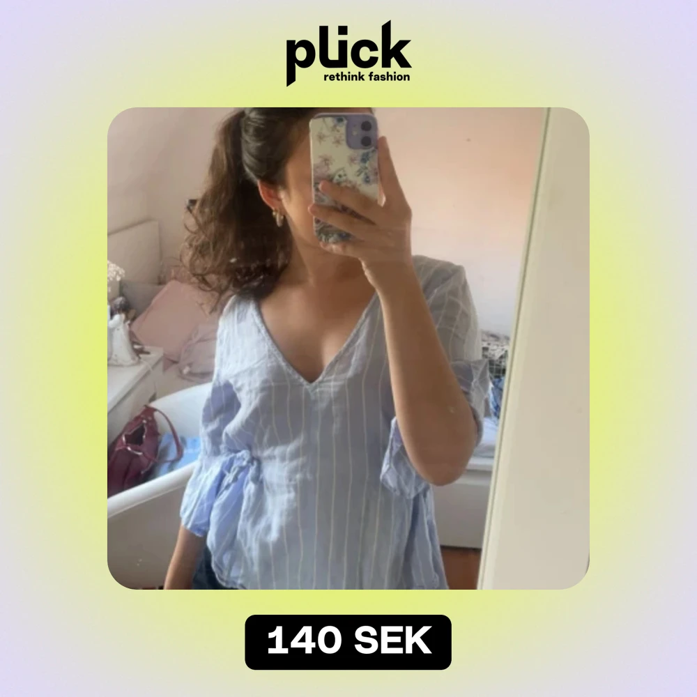 Så söt blus i vit och blå randig. Kommer inte till användning längre, fint skick🩵🩵🩵