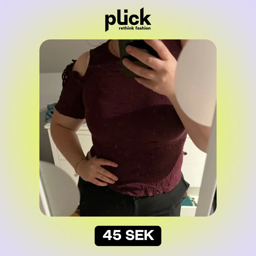 Söt vinröd blus med snygga detaljer vid axlarna, både öppna vid axlarna samt knutna snören vid början av ärmen. Strl S/M 45kr Köparen står för frakten💕