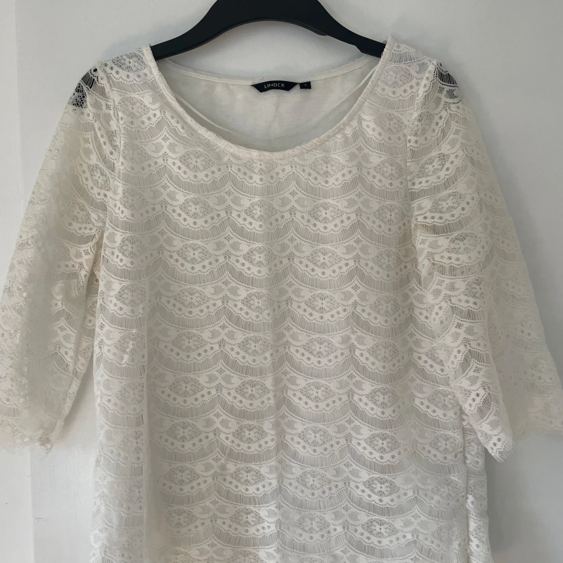 Jättegullig tröja i spets med trekvarts ärmar från Lindex i storlek S.