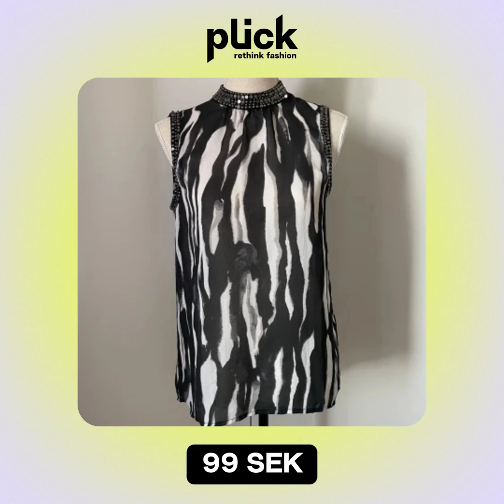 Unik mönstrad blus med strass längs halsen! 🖤Storlek S, använd 2-3 gånger