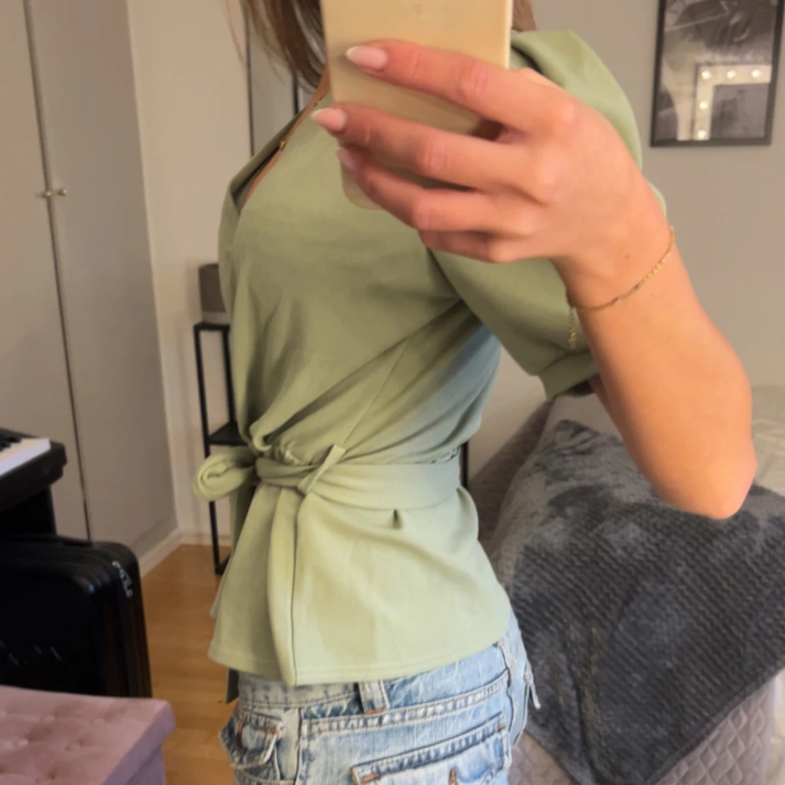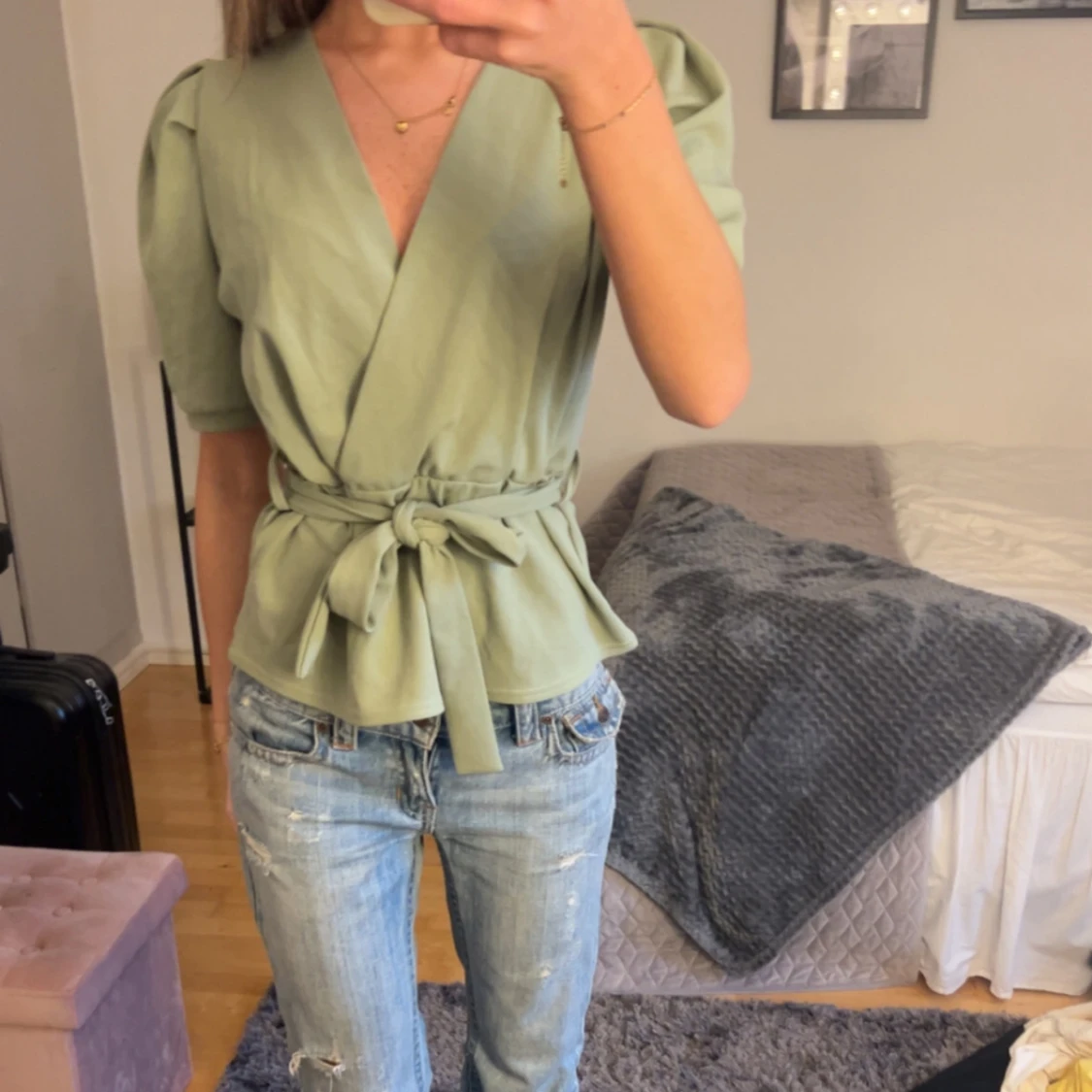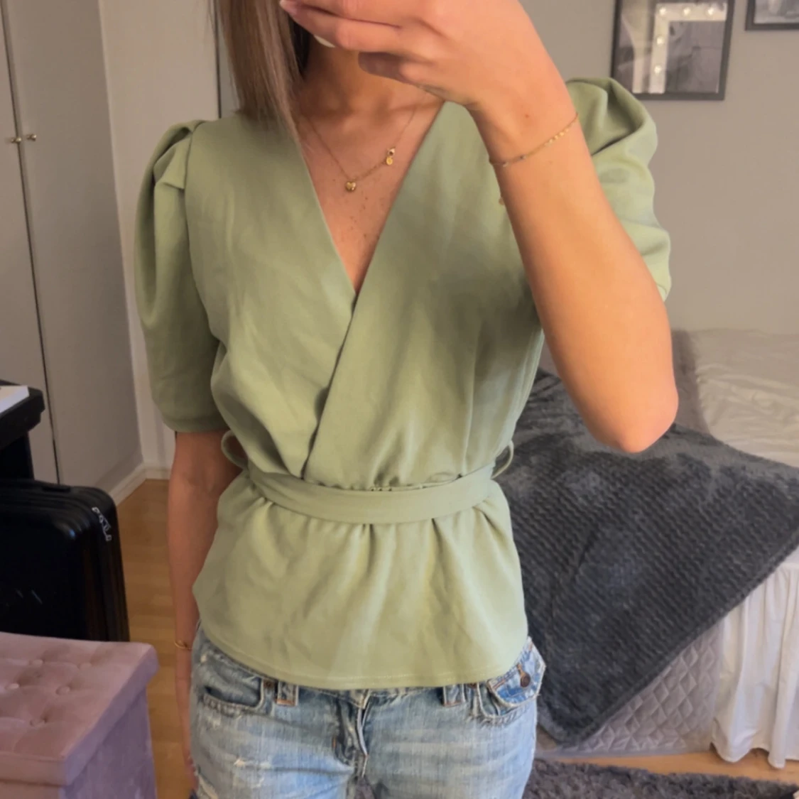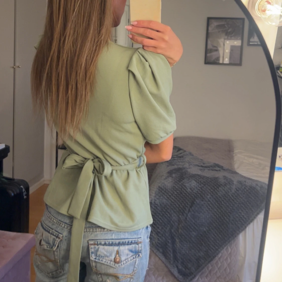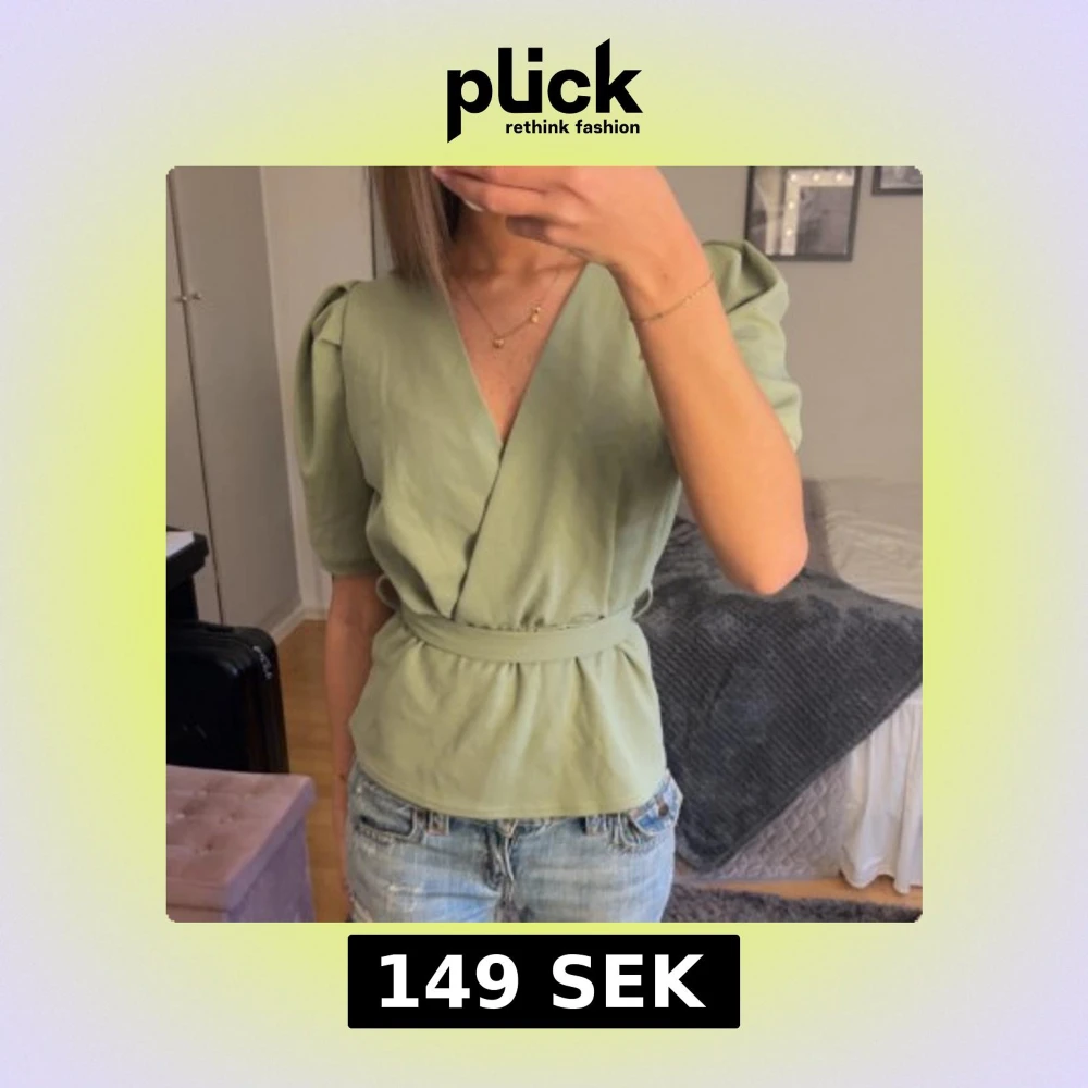 Jättefin grön peplumtopp som man knyter, går att knyta som man vill!!🤍