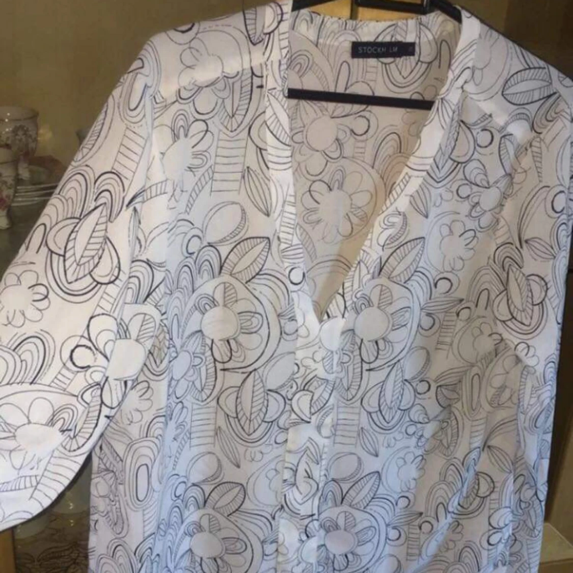 En jätte fin blusar med fina mönster, använd par gånger. Köpte den för 299kr men säljer den för 80kr Köparen står för frakt.