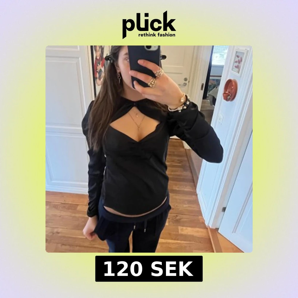 Snygg svart långärmad topp med en unik öppen detalj framtill. Perfekt för att ge en stilren och modern look. Passar bra till både jeans och kjol.