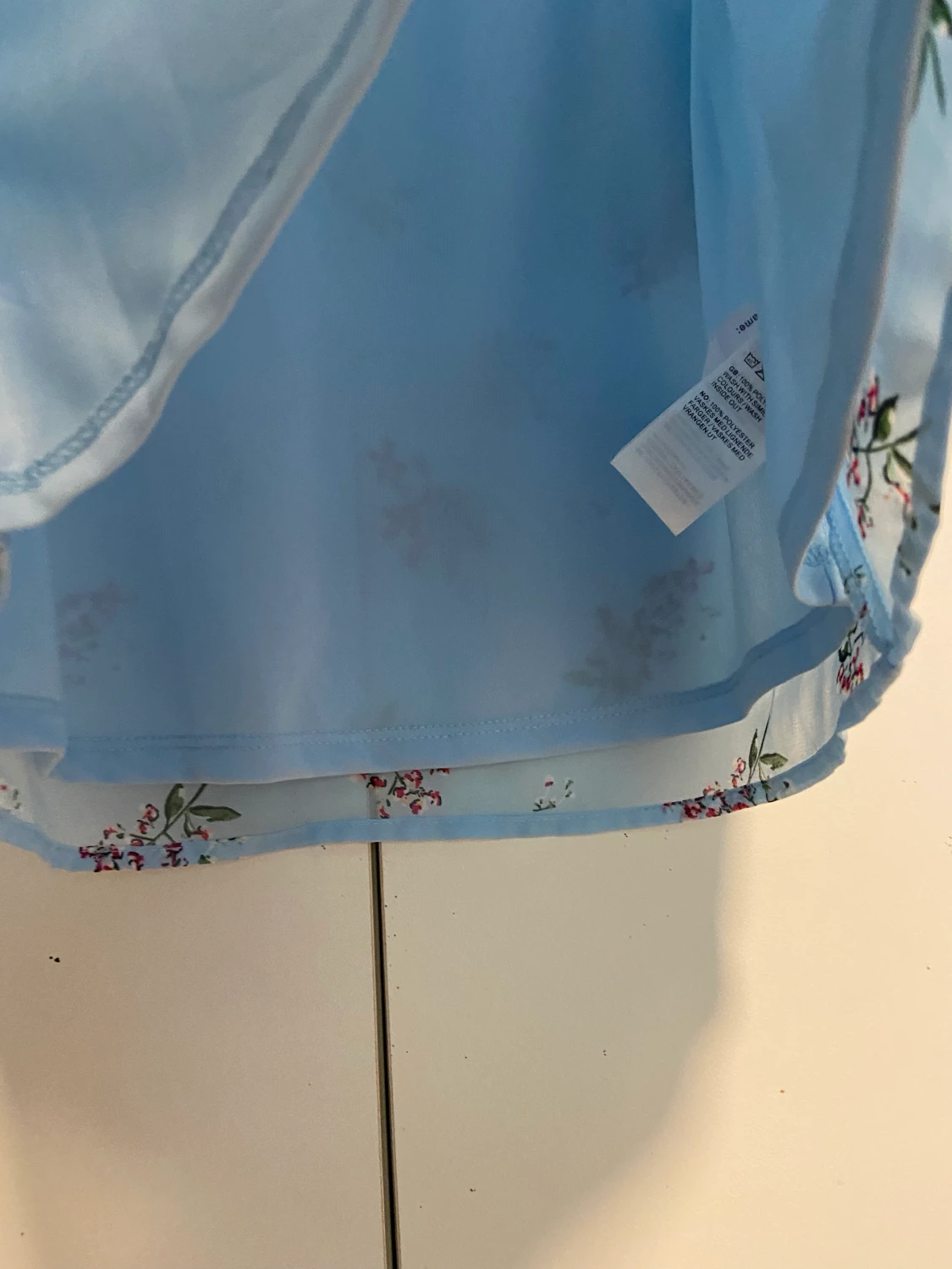 Fin ljus blå blommig blus med volang på axeln! Dubbelt tyg! Aldrig använd ! Storlek 158